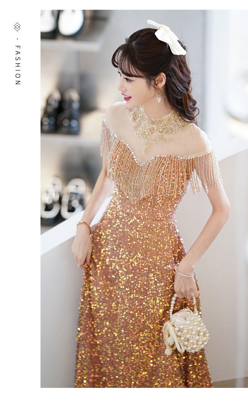 亮片晚禮服裙長款優雅氣質女夏流蘇顯瘦高級感訂婚結婚敬酒服新娘