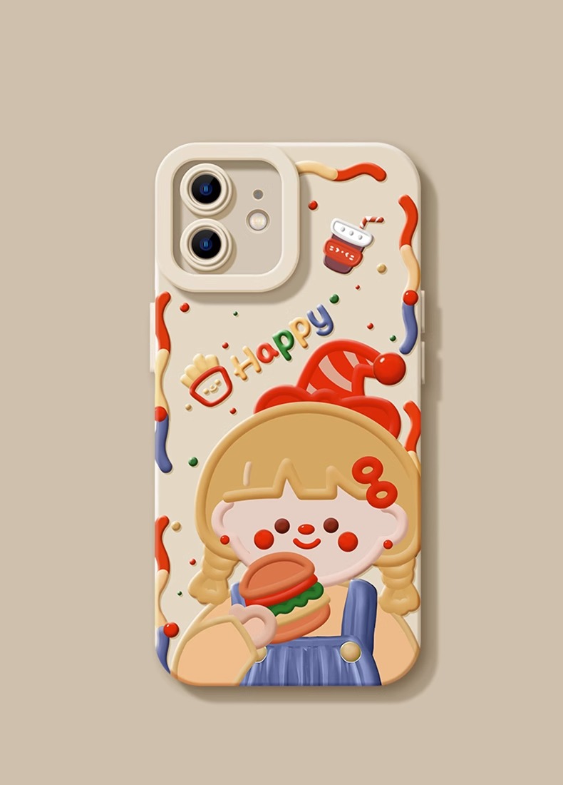 酷圖適用蘋果14手機殼新款漢堡女孩iphone13promax保護套超薄硅膠XR簡約超火爆款12全包防摔可愛plus高級感潮