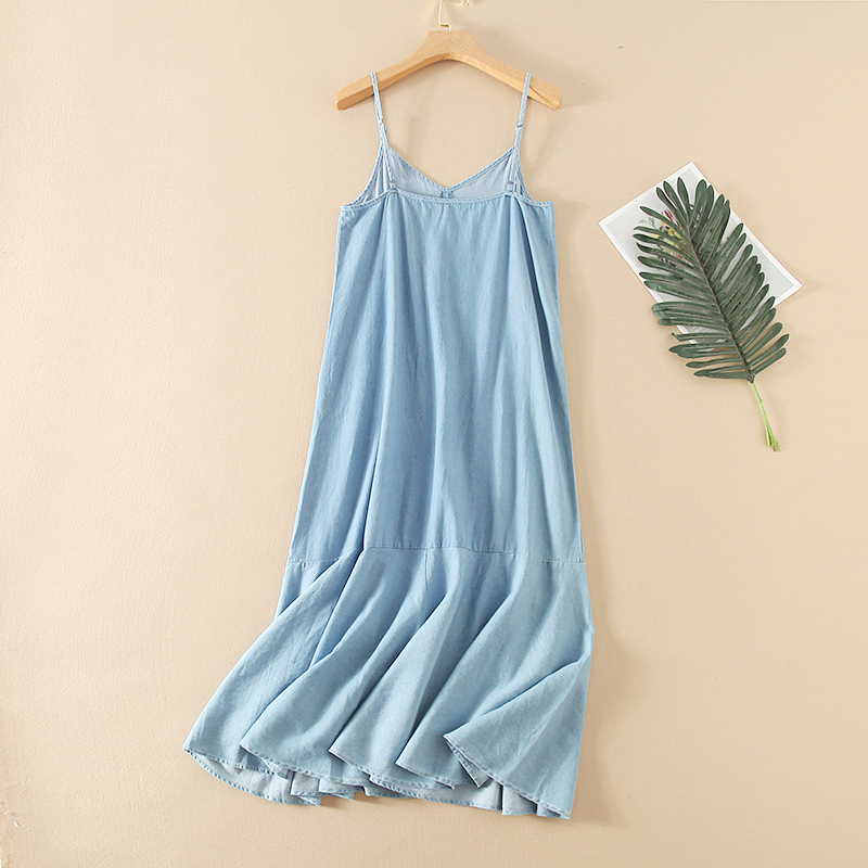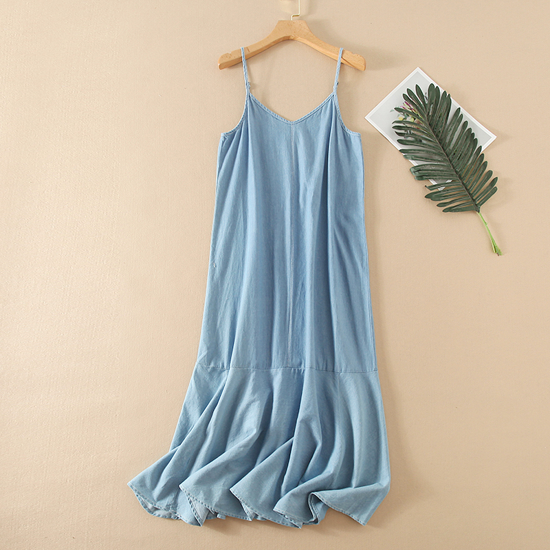 3076韓系純色V領牛仔吊帶裙夏季新款寬松顯瘦休閑減齡連衣裙
