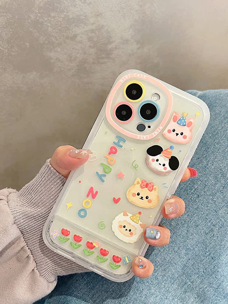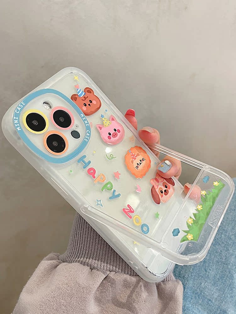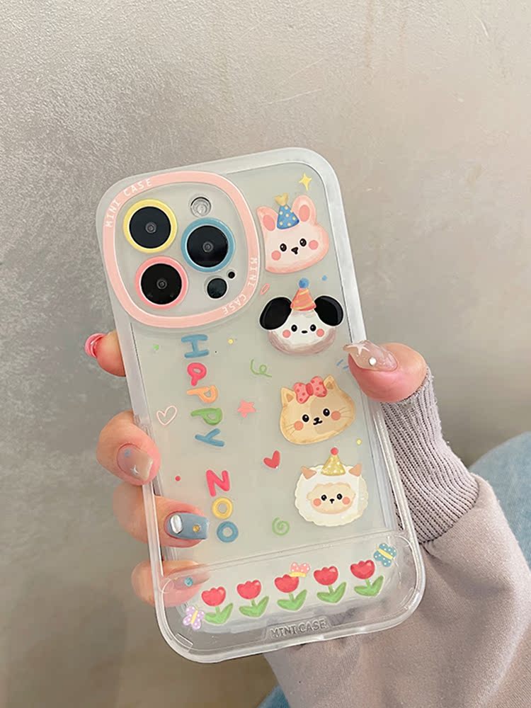 日韓ins卡通可愛小動物派對適用蘋果14promax手機殼iphone13pro帶支架12新款11小眾高級感max情侶網紅手機套