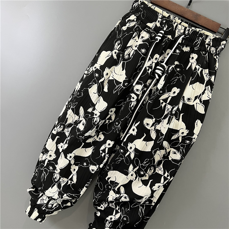 春夏百搭寬松潮流印花高彈男哈倫褲