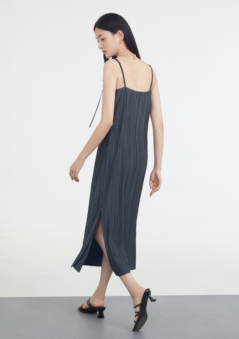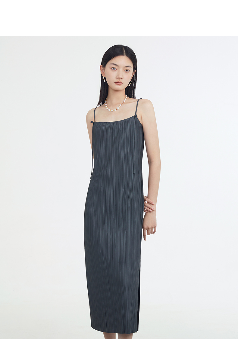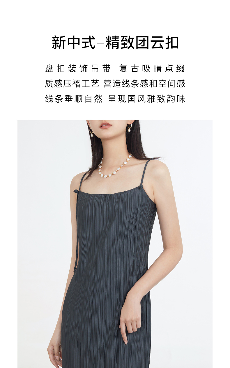 商場同款naivee納薇23夏新款新中式文藝度假優雅盤扣褶皺吊帶裙