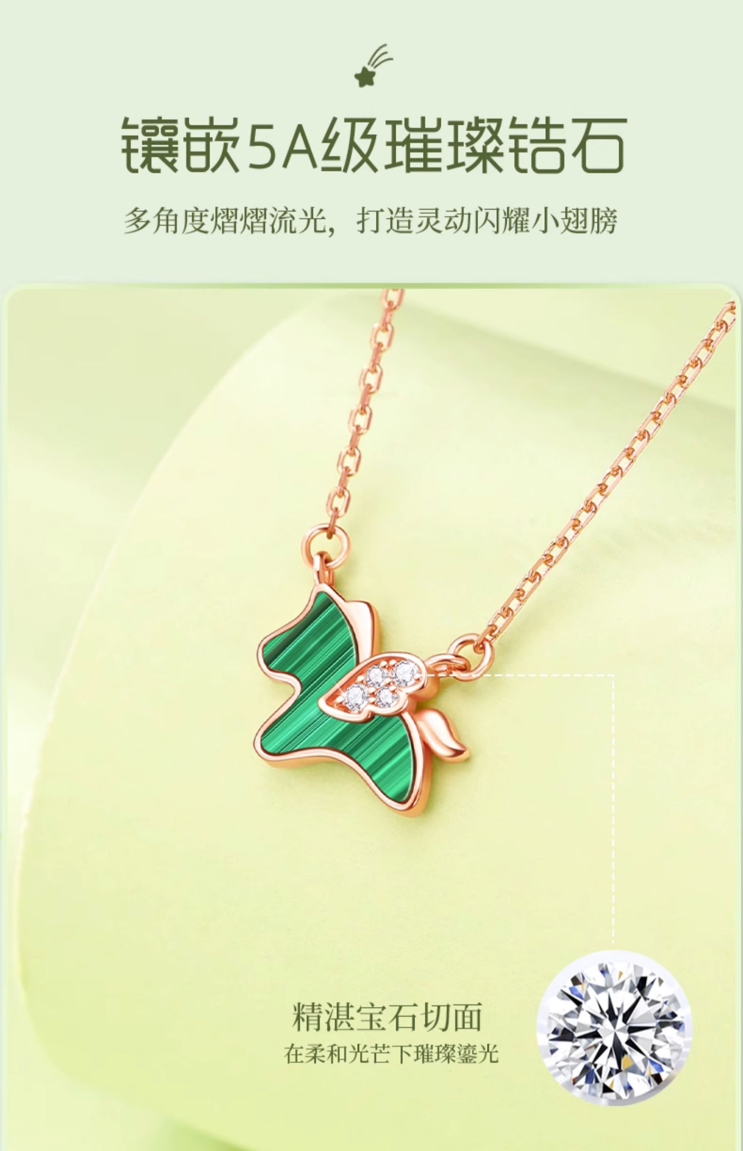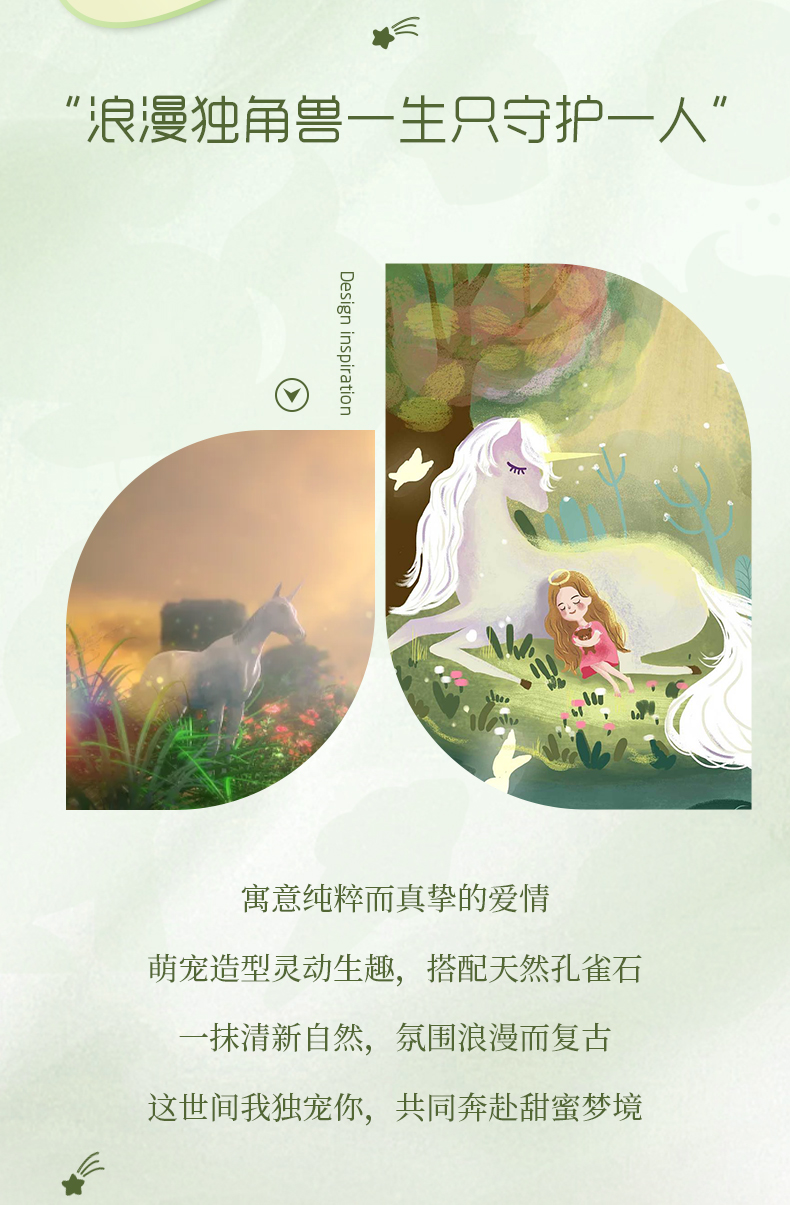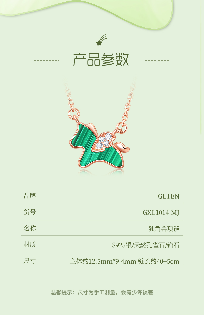 孔雀石獨角獸純銀項鏈女款輕奢小眾女士玫瑰金吊墜生日禮物送女友