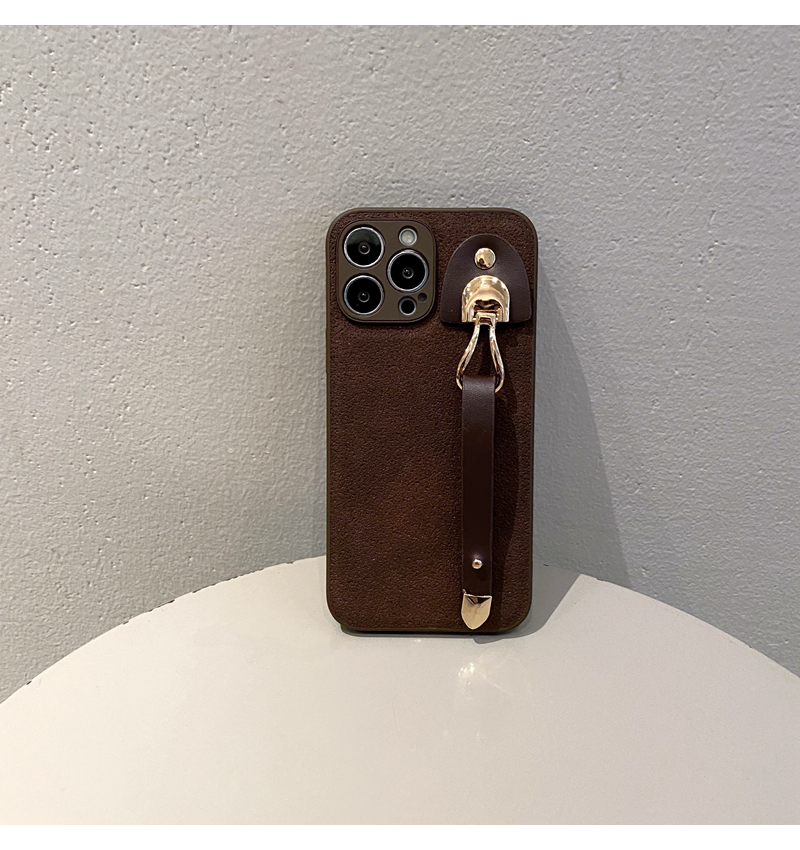 小眾復古皮質咖色手腕帶適用iphone14promax蘋果13手機殼12創意11輕奢14pro高級感x/xsmaxr全包軟殼xr女款
