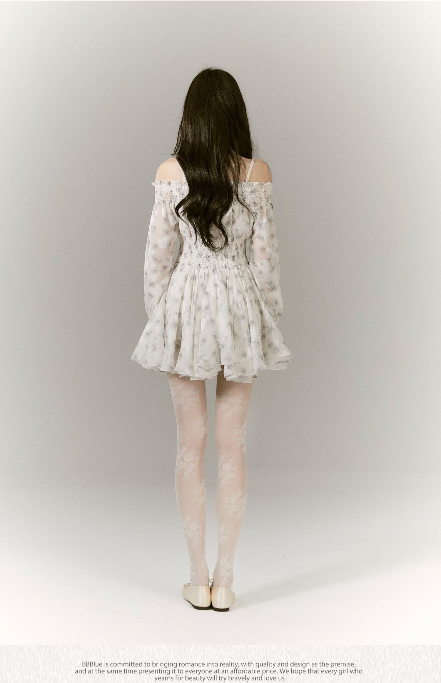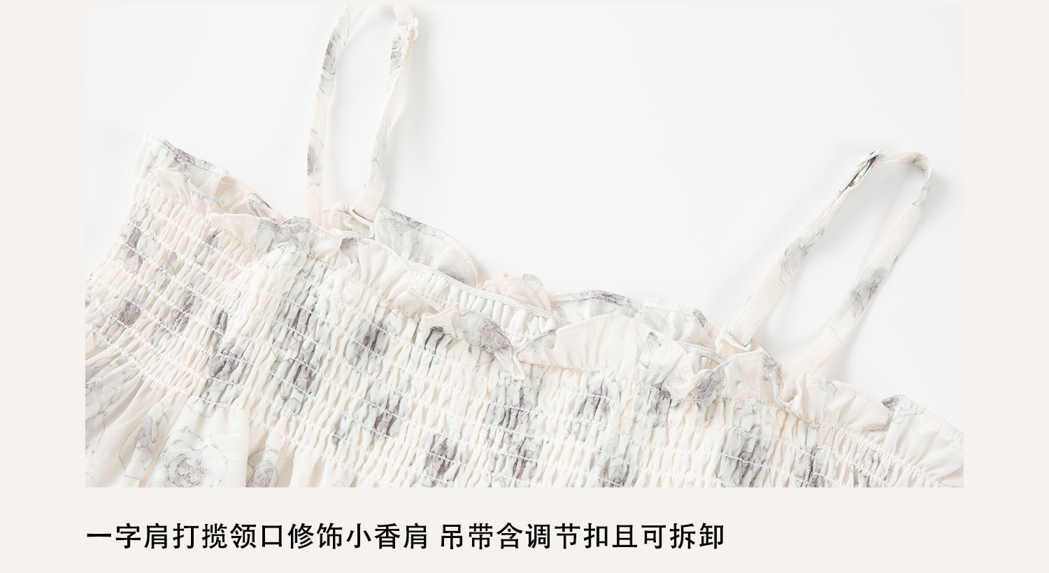 BB BLUE原創設計 法式茶歇海邊度假一字肩碎花吊帶連衣裙小眾裙子