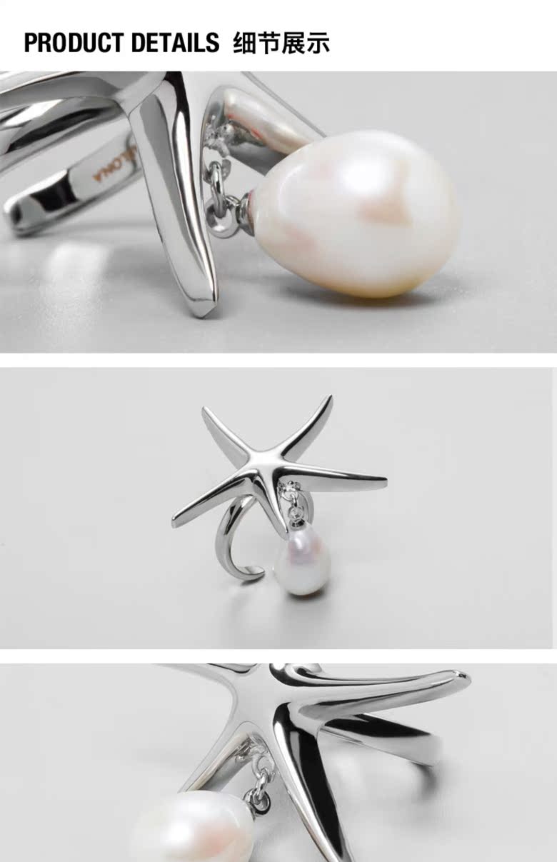 PEARLONA新款海星戒指女個性歐美風迷幻海洋巴洛克配飾開口戒