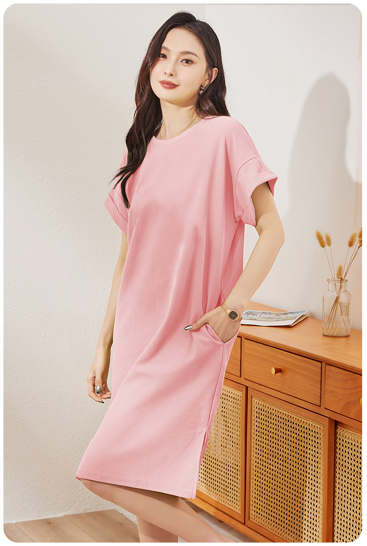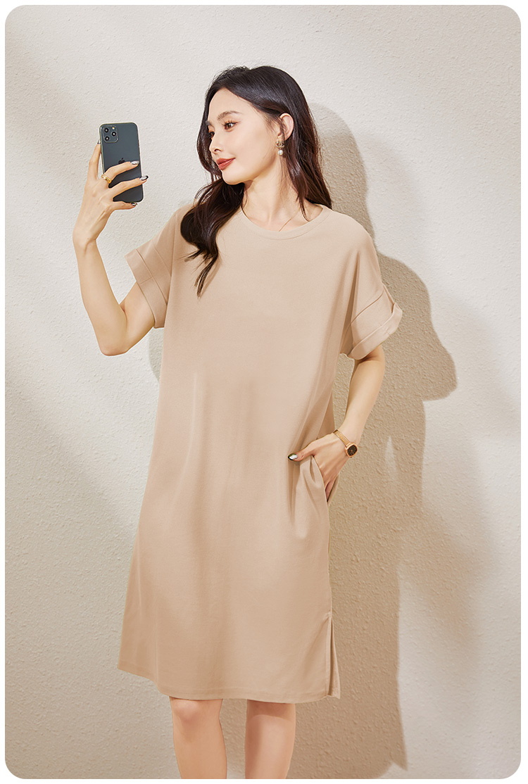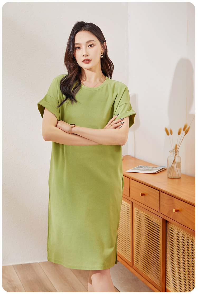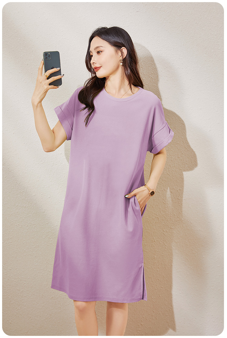 寬松純棉t恤裙女中長款夏2023新款懶人休閑簡約顯瘦短袖連衣裙