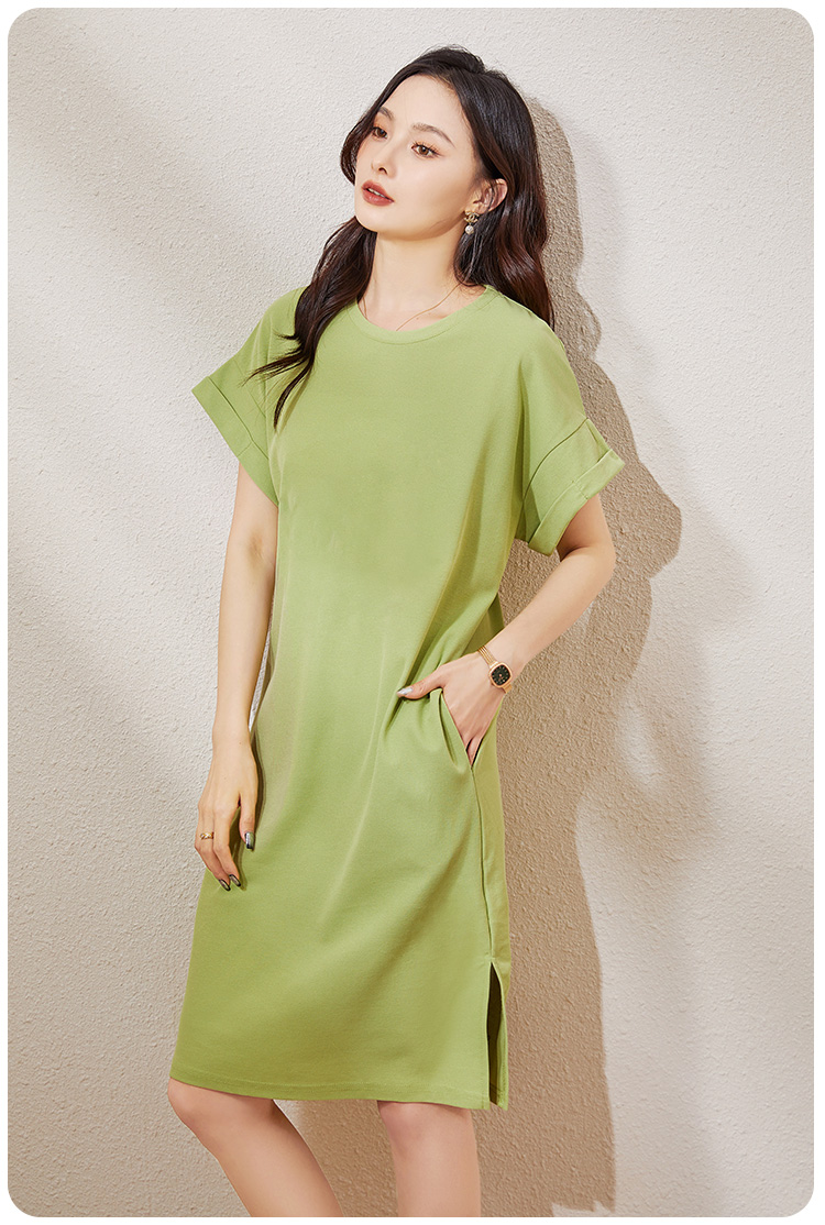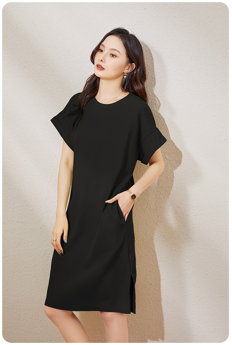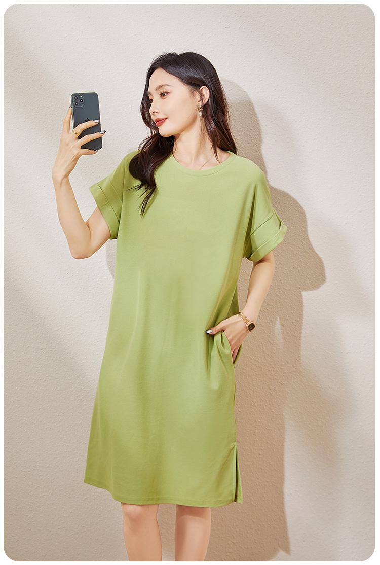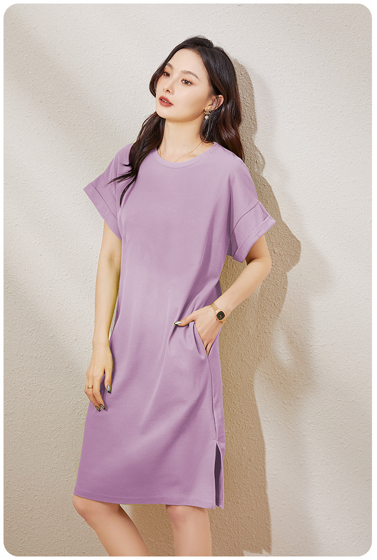 寬松純棉t恤裙女中長款夏2023新款懶人休閑簡約顯瘦短袖連衣裙