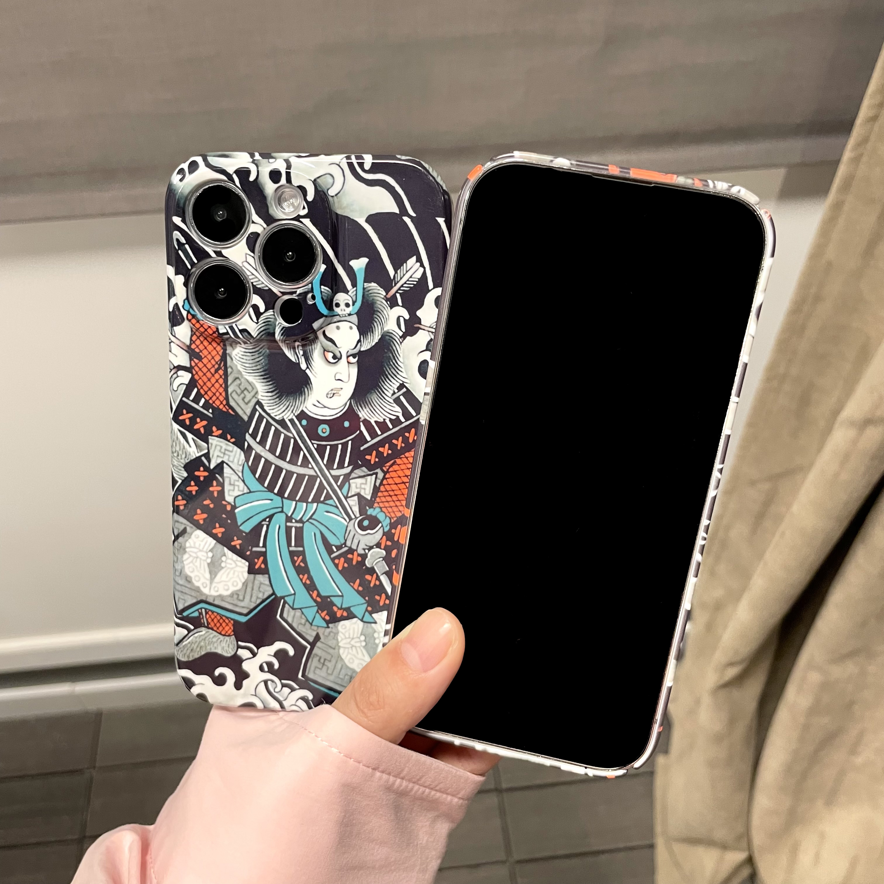 遮臉藝妓紋身適用蘋果13pro/14proMax手機殼iphone12proMax/14plus全包硬殼防摔11/XR/XS磨砂個性復古7/8plus