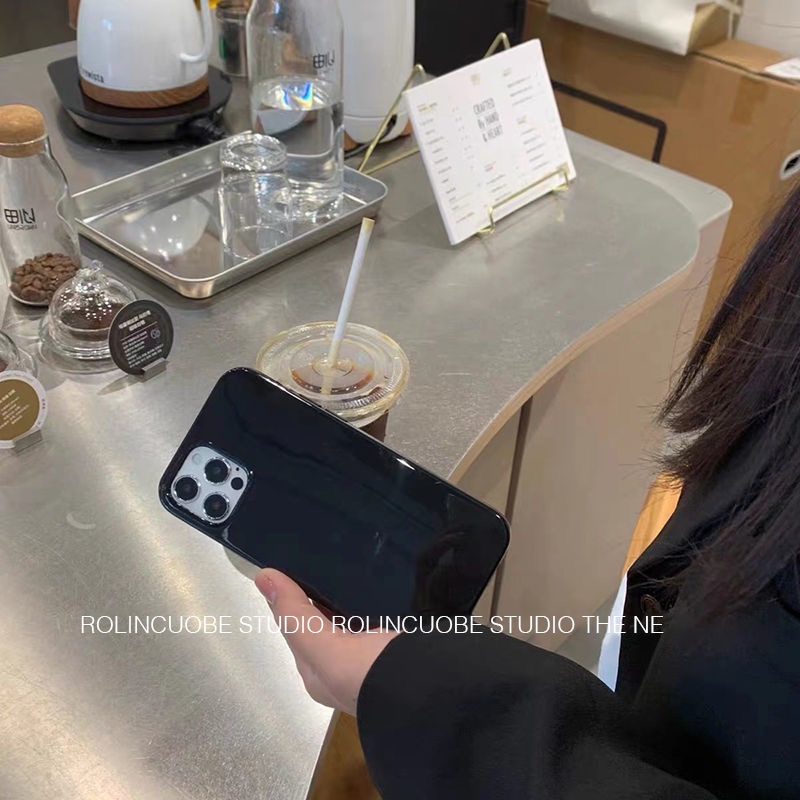 亮光面黑色高級適用12/11pro手機殼蘋果13/Xs/XR防摔iPhone7p/8p硅膠14Pro軟殼mini鏡頭全包保護套簡約潮男女