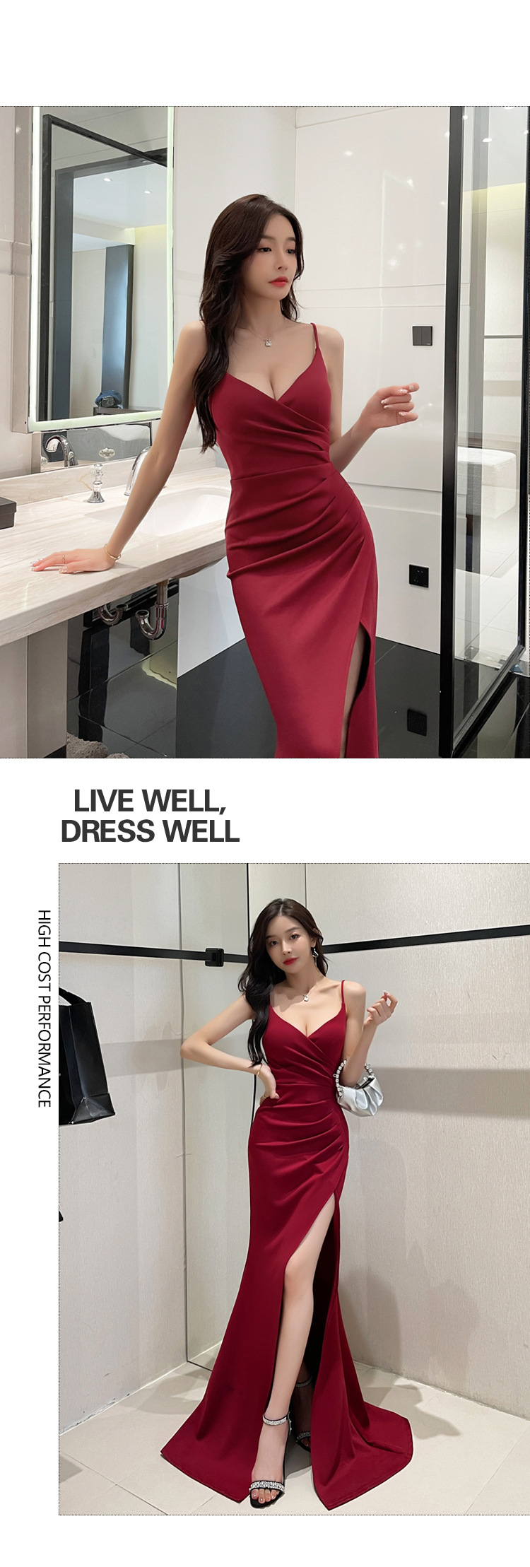 性感連衣裙氣質顯瘦遮肚子夜場上班衣服沐足技師工作服長款晚禮服