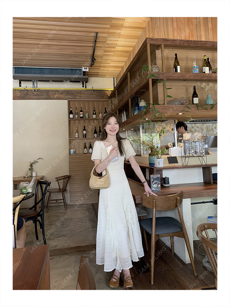 吱呤漂亮氣質連衣裙2023新款女裝夏季海邊度假長裙高級感法式裙子