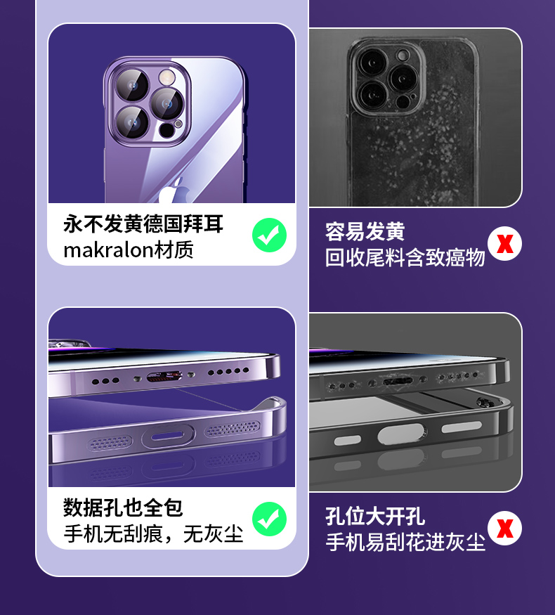 適用蘋果15pro手機殼電鍍透明iPhone14/13保護套12promax無邊框硬殼14plus個性簡約全包鏡頭防摔男女外殼黑藍