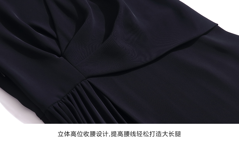 初秋女裝2023新款藏青色褶皺連衣裙氣質顯瘦高級感中長款裙子減齡