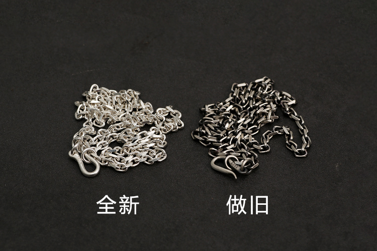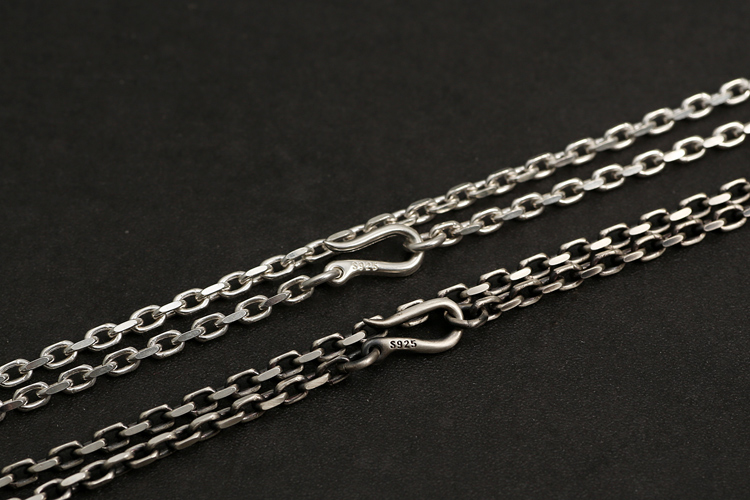 三沐高橋吾郎手工925純銀十字鏈魚鉤百搭潮男女款3mm手工銀鏈diy