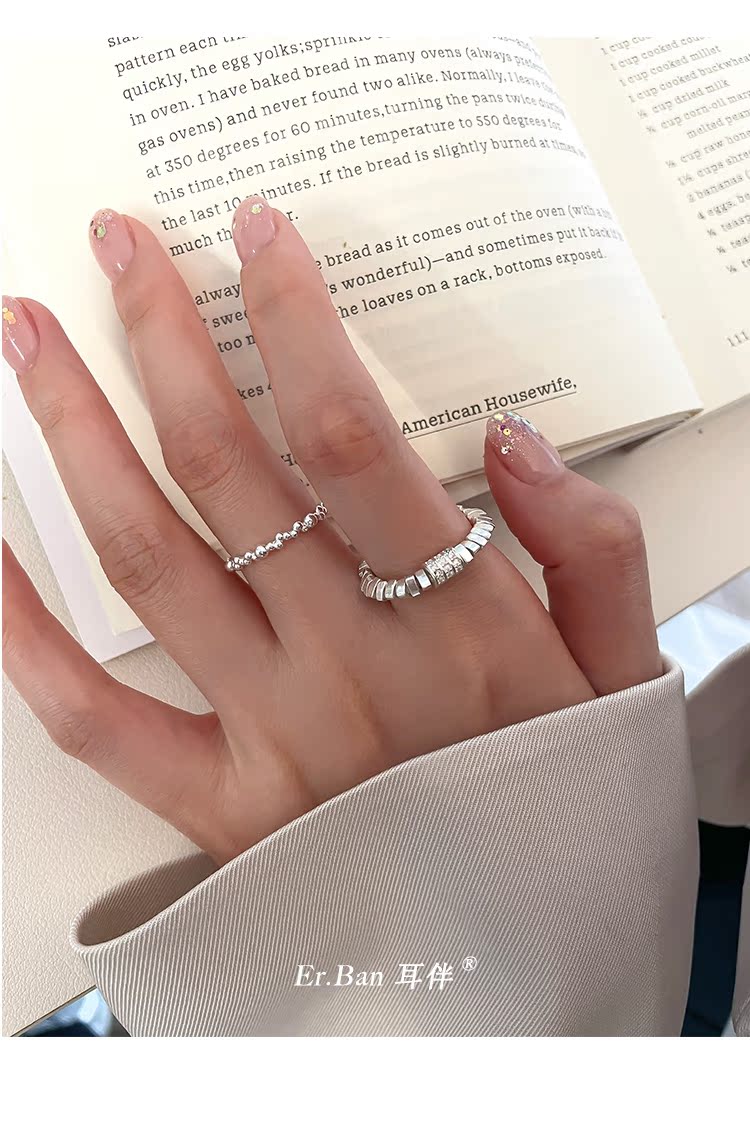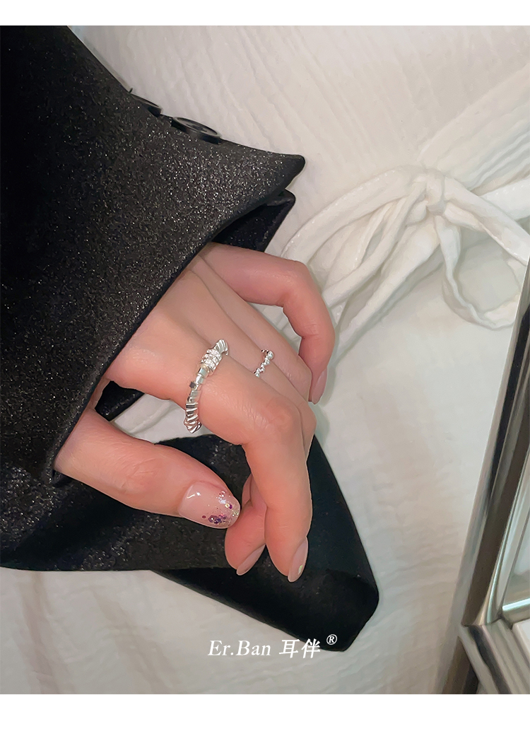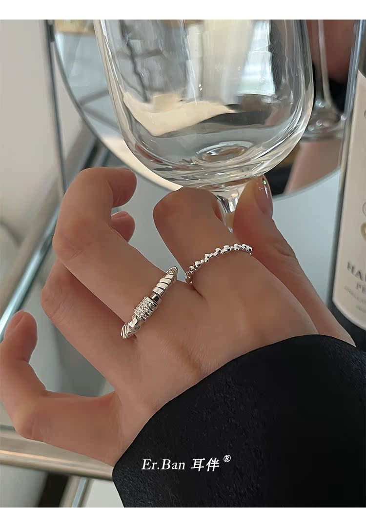 925純銀戒指女小眾設計高級感碎銀幾兩鋯石食指戒松緊可調節指環