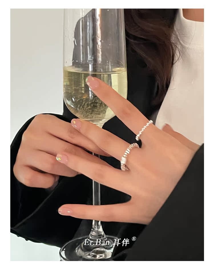 MODIAN摩典S925純銀不規則碎銀子戒指女小眾簡約精致可調節食指戒