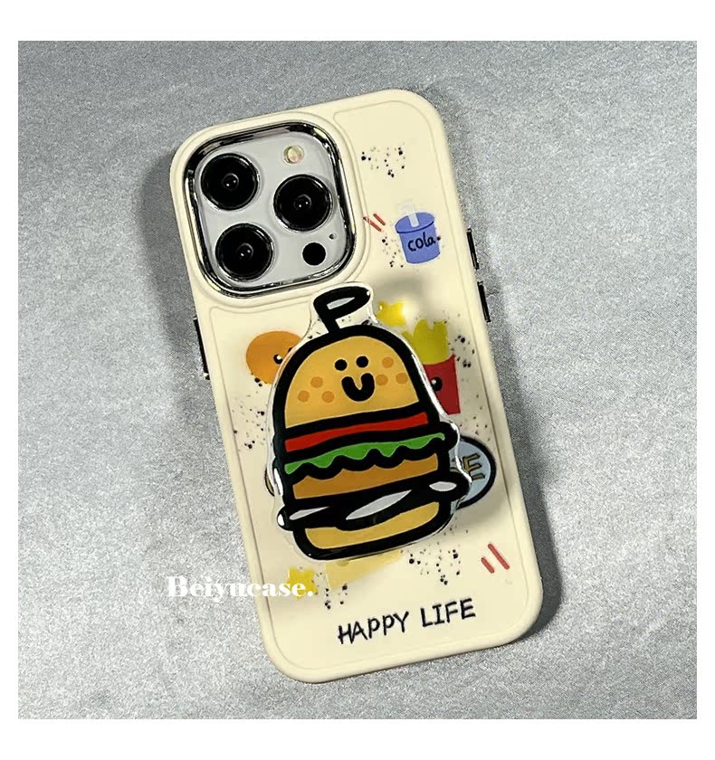 趣味卡通薯條漢堡支架適用iphone14promax蘋果13手機殼12新款11硅膠14pro女13promax防摔13創意小眾全包軟殼