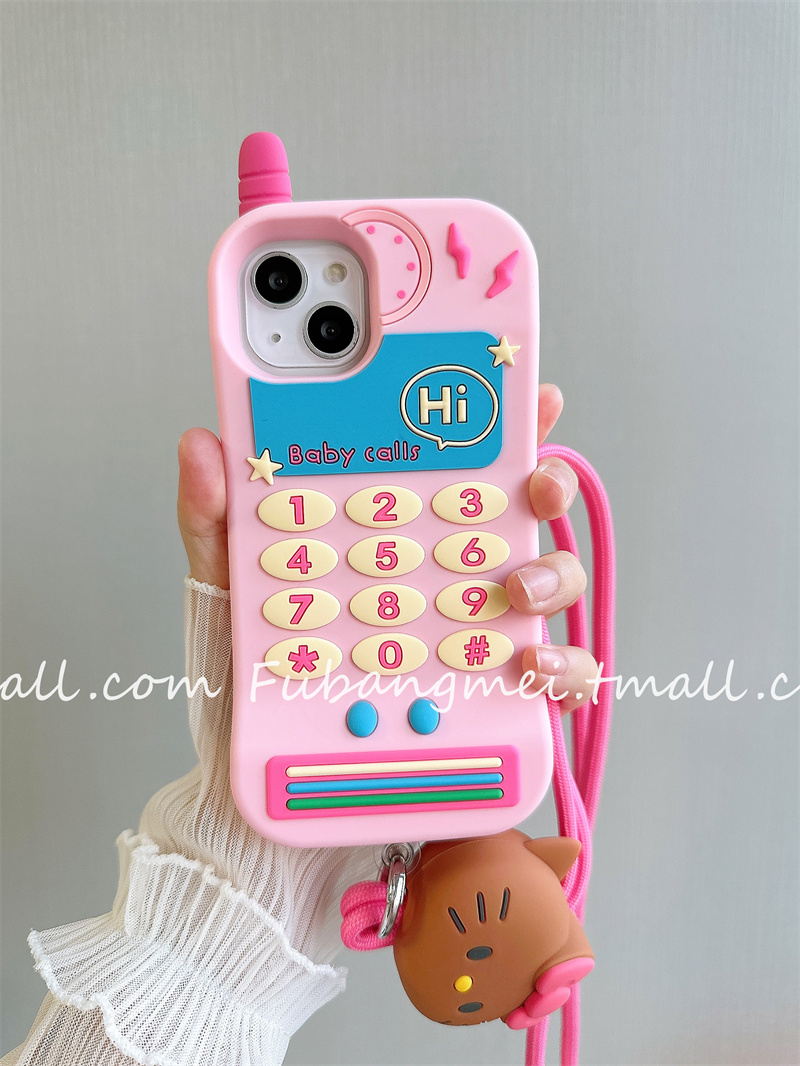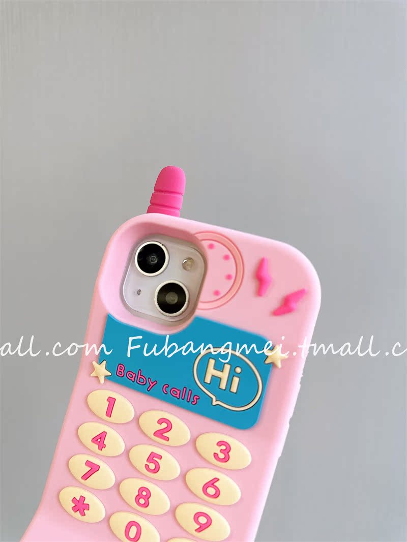 日韓ins立體粉色電話機適用蘋果13手機殼iPhone14pro max新款13promax防摔11硅膠保護套12可愛女款14全包軟殼