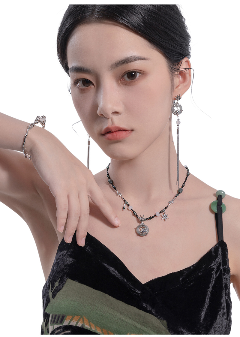 MASW麻秀原創設計暗黑星月吊墜項鏈個性甜酷辣妹串珠新中式鎖骨鏈