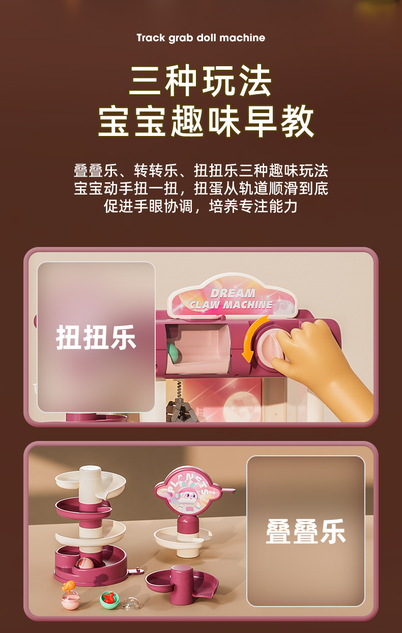 新款抓娃娃機轉轉樂兒童玩具網紅小型家用投幣夾公仔扭蛋機過家家