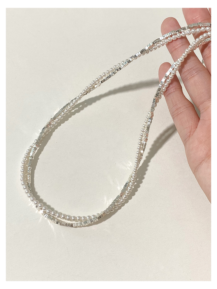 suzyacc kr雙層珍珠碎銀子麻花項鏈女2023新款爆款小眾設計鎖骨鏈