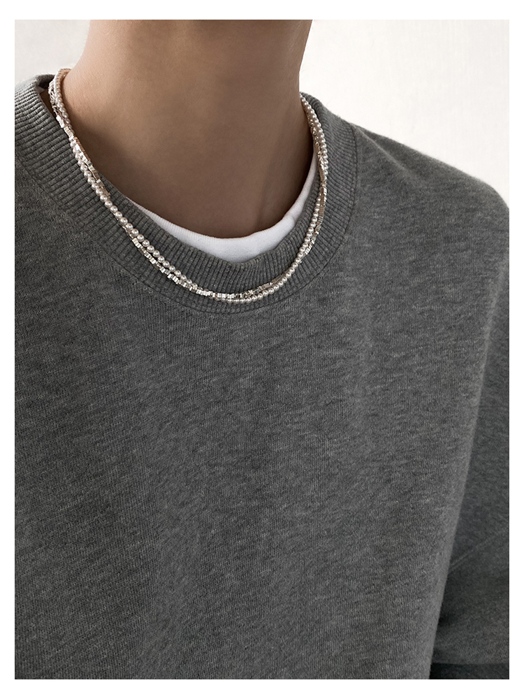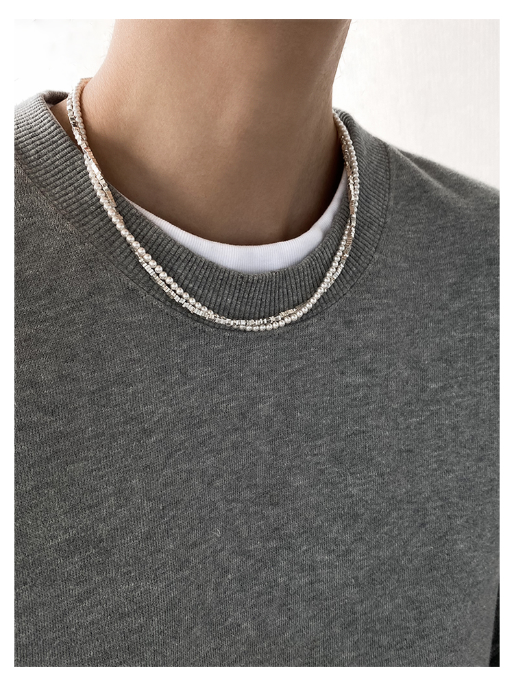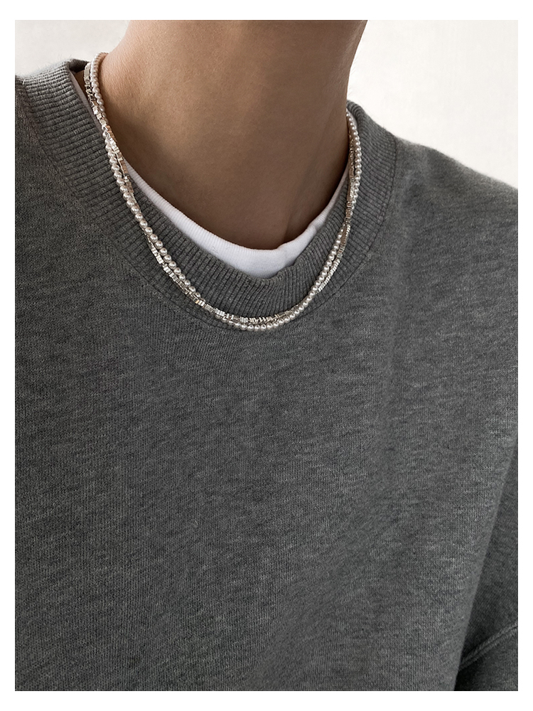 DOUDOUSTORE超酷休閑清冷好品質灰色珍珠鏈條拼接項鏈女小眾個性