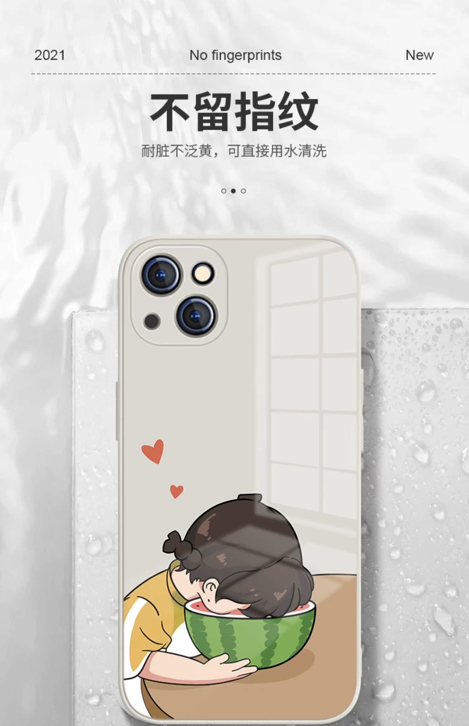 iPhone13Pro手機殼吃瓜情侶蘋果14plus卡通可愛12promax適用xs西瓜mini夏季11女孩8小眾xr玻璃7p趣味6男新款
