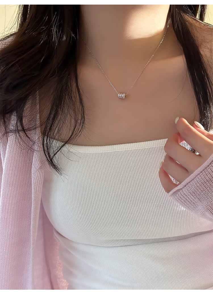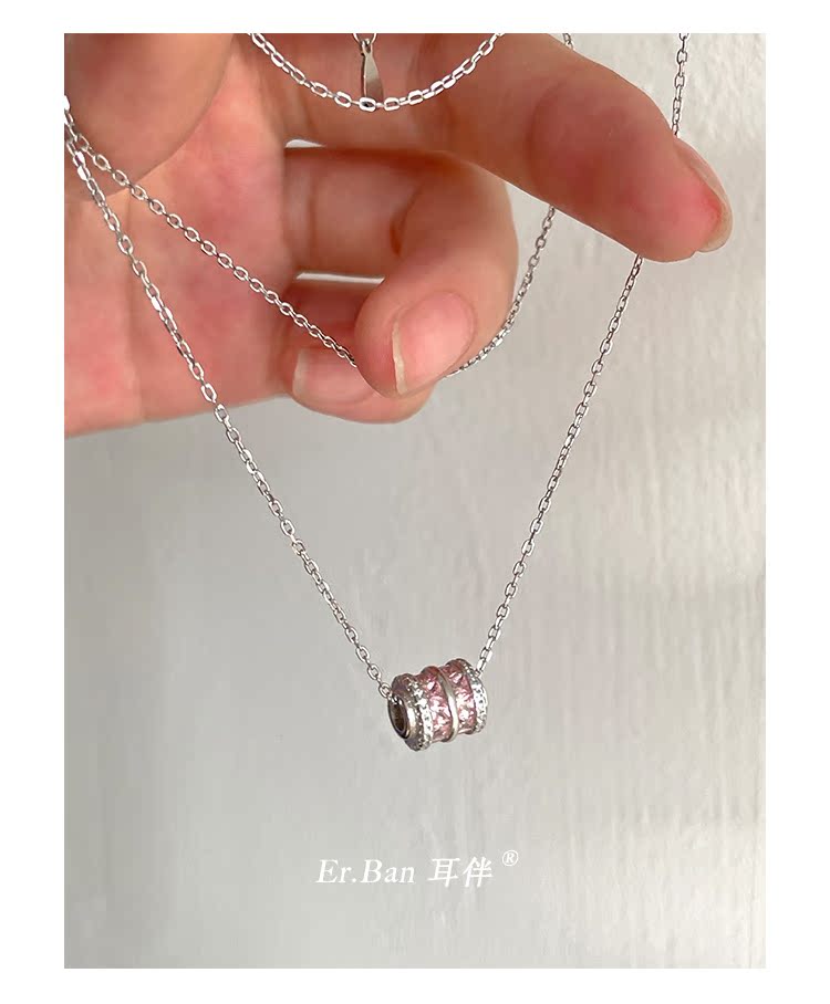 粉色小蠻腰轉運純銀鉆石女輕奢項鏈