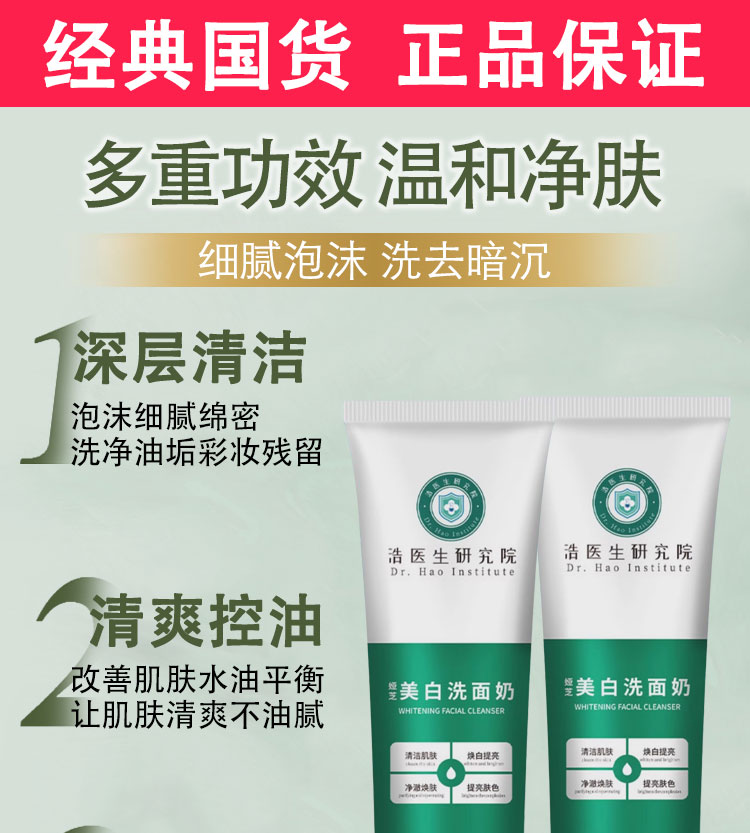 浩醫生研究院美白洗面奶淡斑提亮膚色清潔控油女男士專用潔面乳