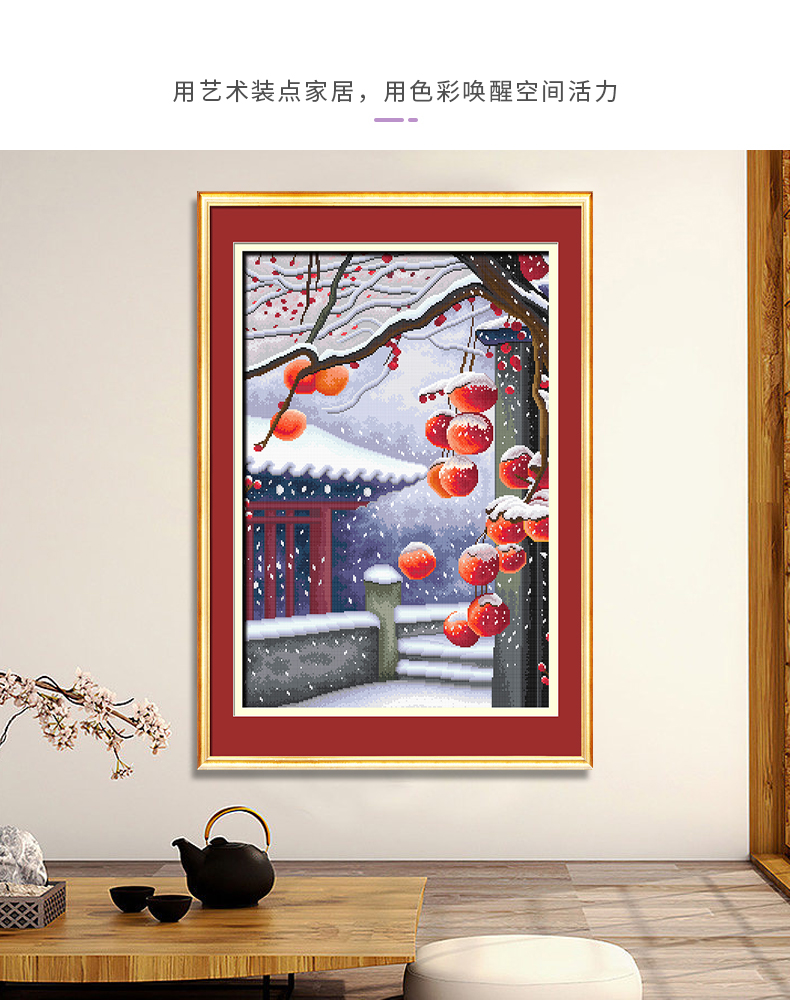 ks十字繡2023新款客廳臥室掛畫自己繡手工繡刺繡線繡柿柿如意