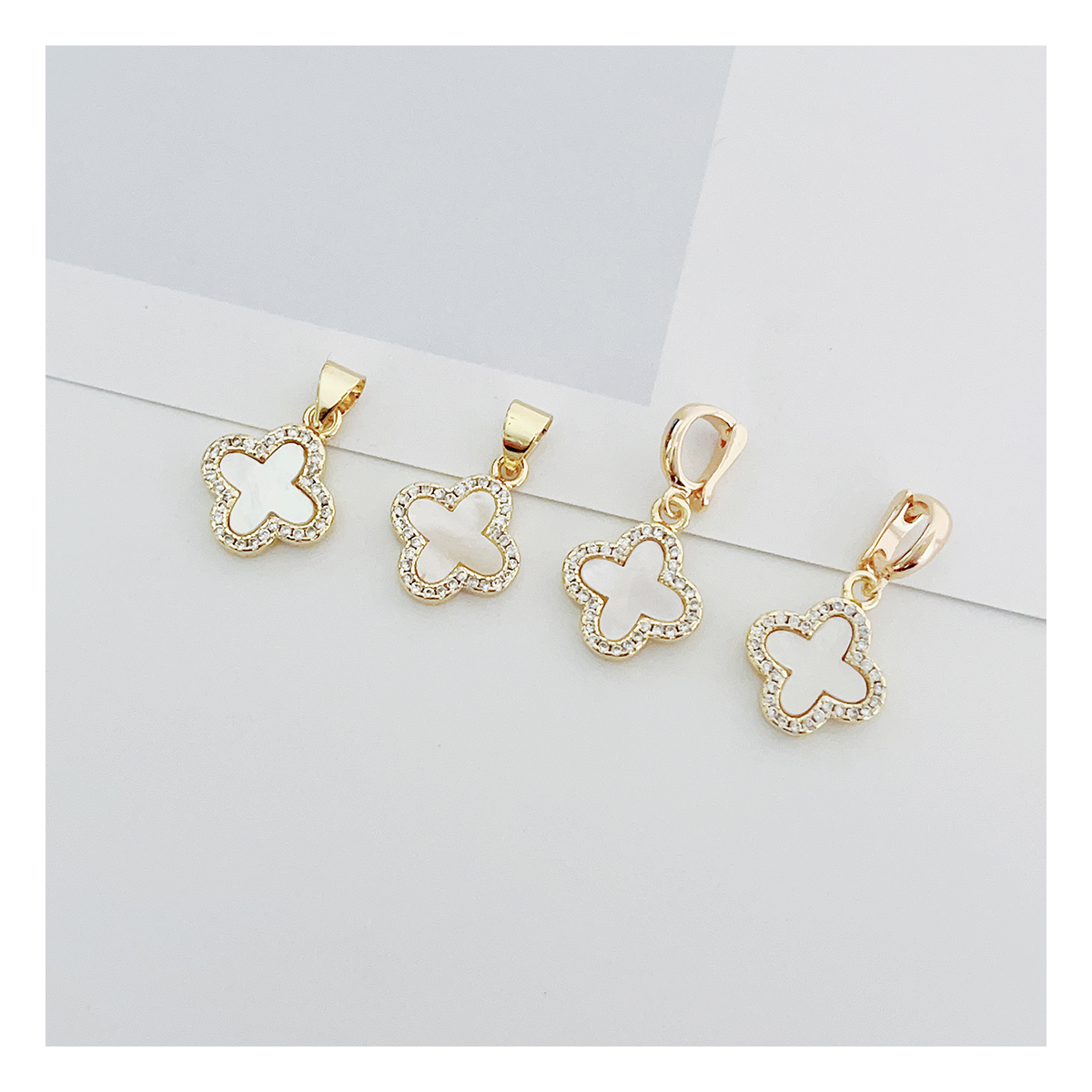 可拆卸萬能扣頭白貝吊墜四葉草珍珠項鏈吊墜不掉色貝殼項墜