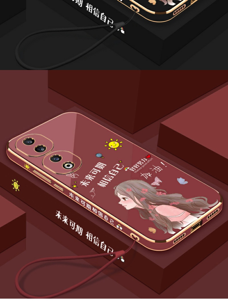 適用于華為榮耀90手機殼女款超薄曲屏硅膠防摔Honor90/Pro網紅鑲鉆保護套REA-AN00全包鏡頭軟殼REP-AN00腕帶