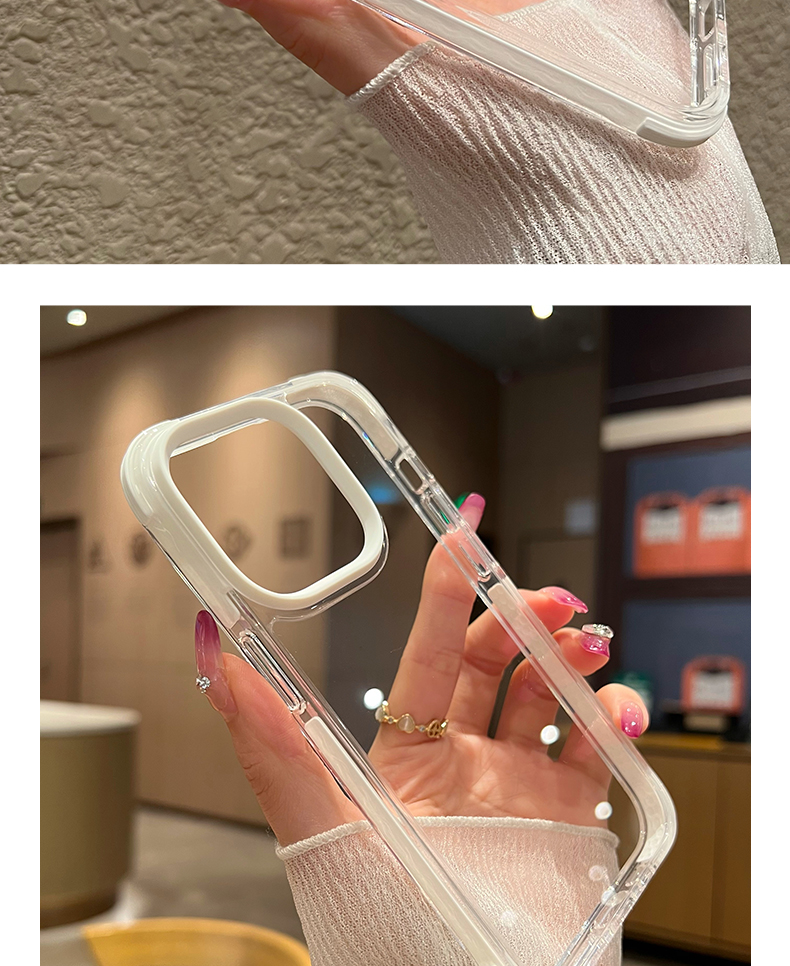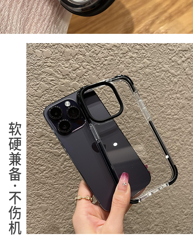 umj 【撞色皮紋軟邊】簡約透明亞克力適用于iphone15新款蘋果14proMax手機殼13高級感pro大孔鏡頭保護套男女