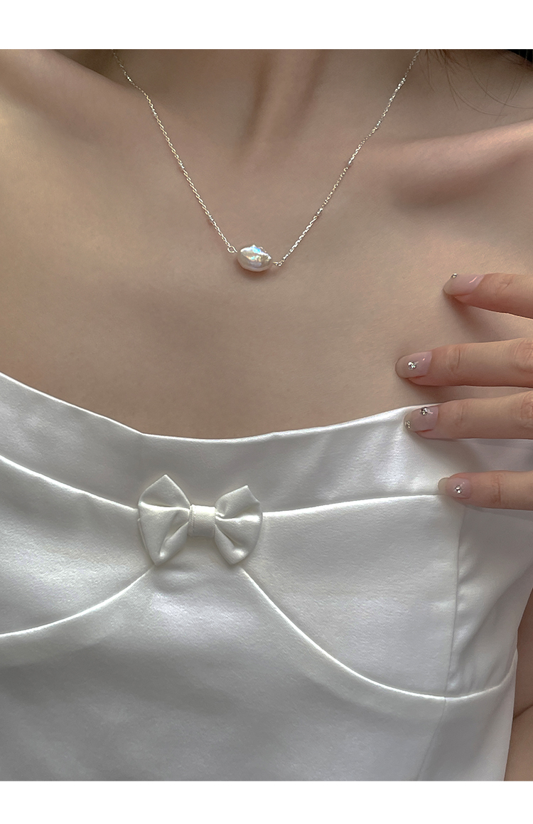 純銀項鏈女款巴洛克天然淡水珍珠輕奢小眾氣質鎖骨鏈高級感頸鏈夏