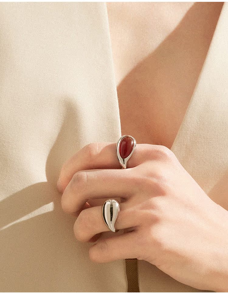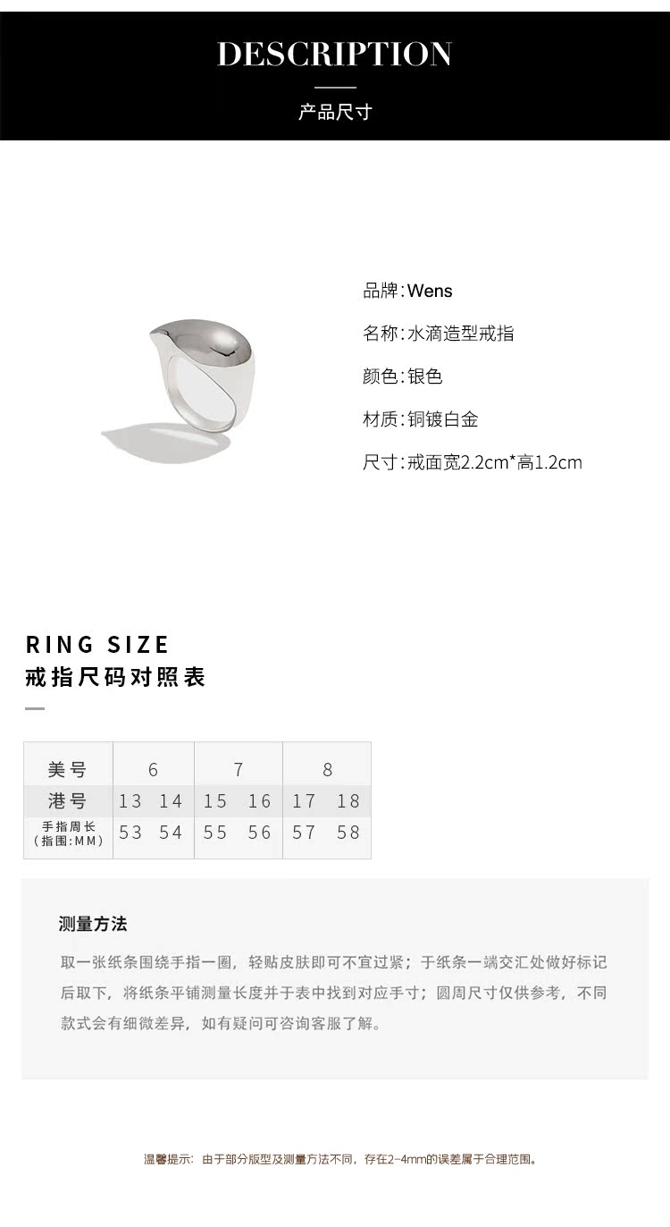 ZZXQ買手店Wens水滴造型簡約高級銀色戒指設計師博主同款小眾女