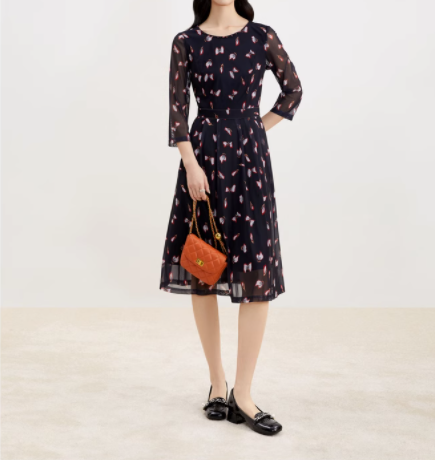 珂萊蒂爾2023年新款中長款收腰氣質優雅碎花印花連衣裙KF07591A1