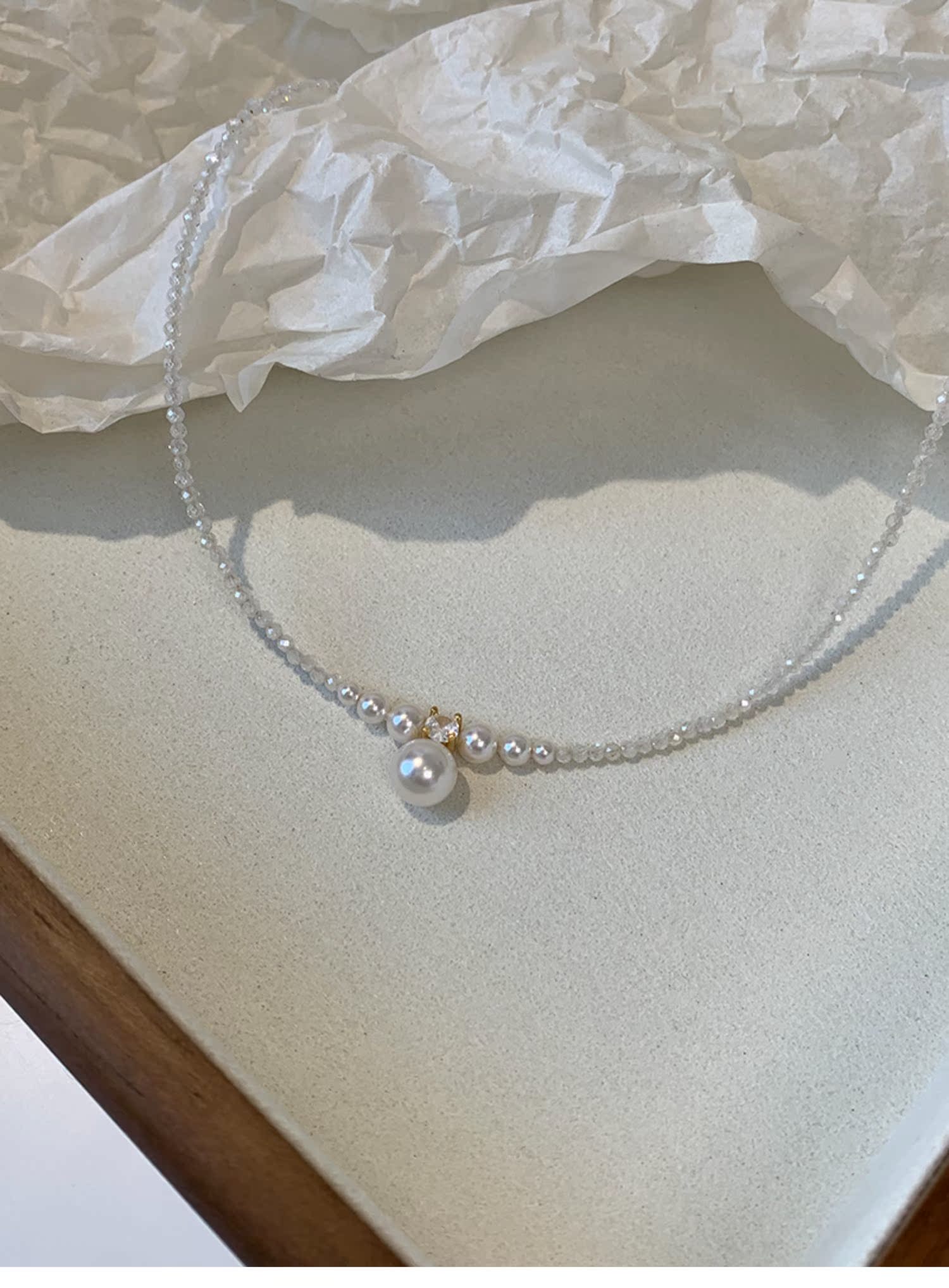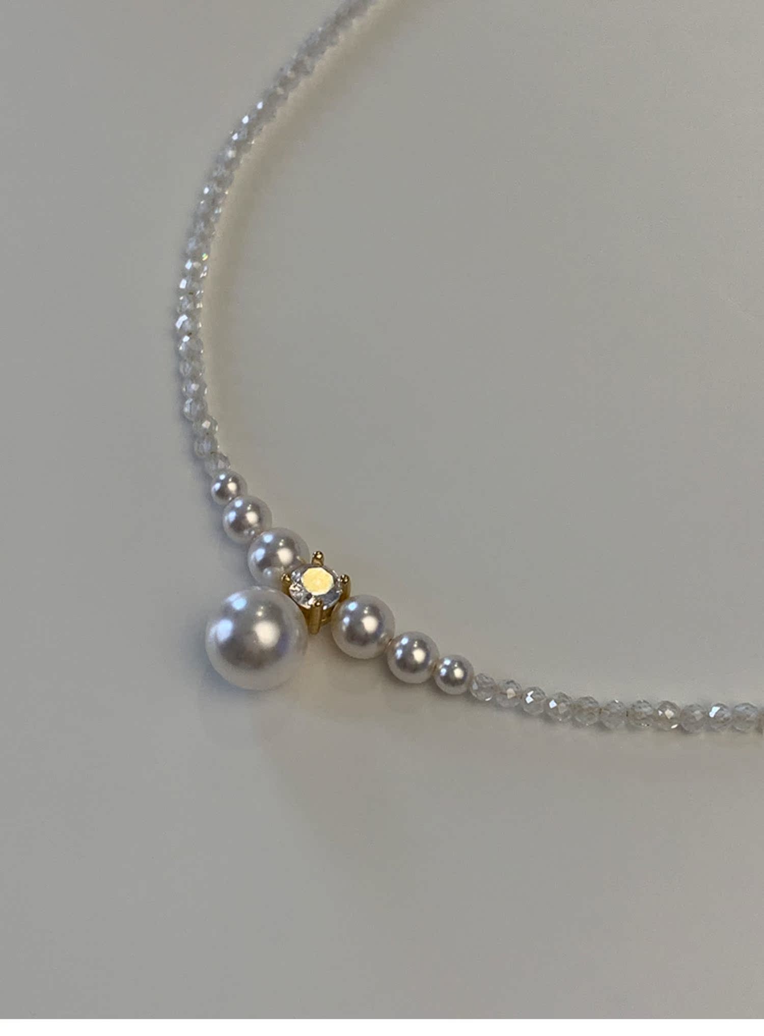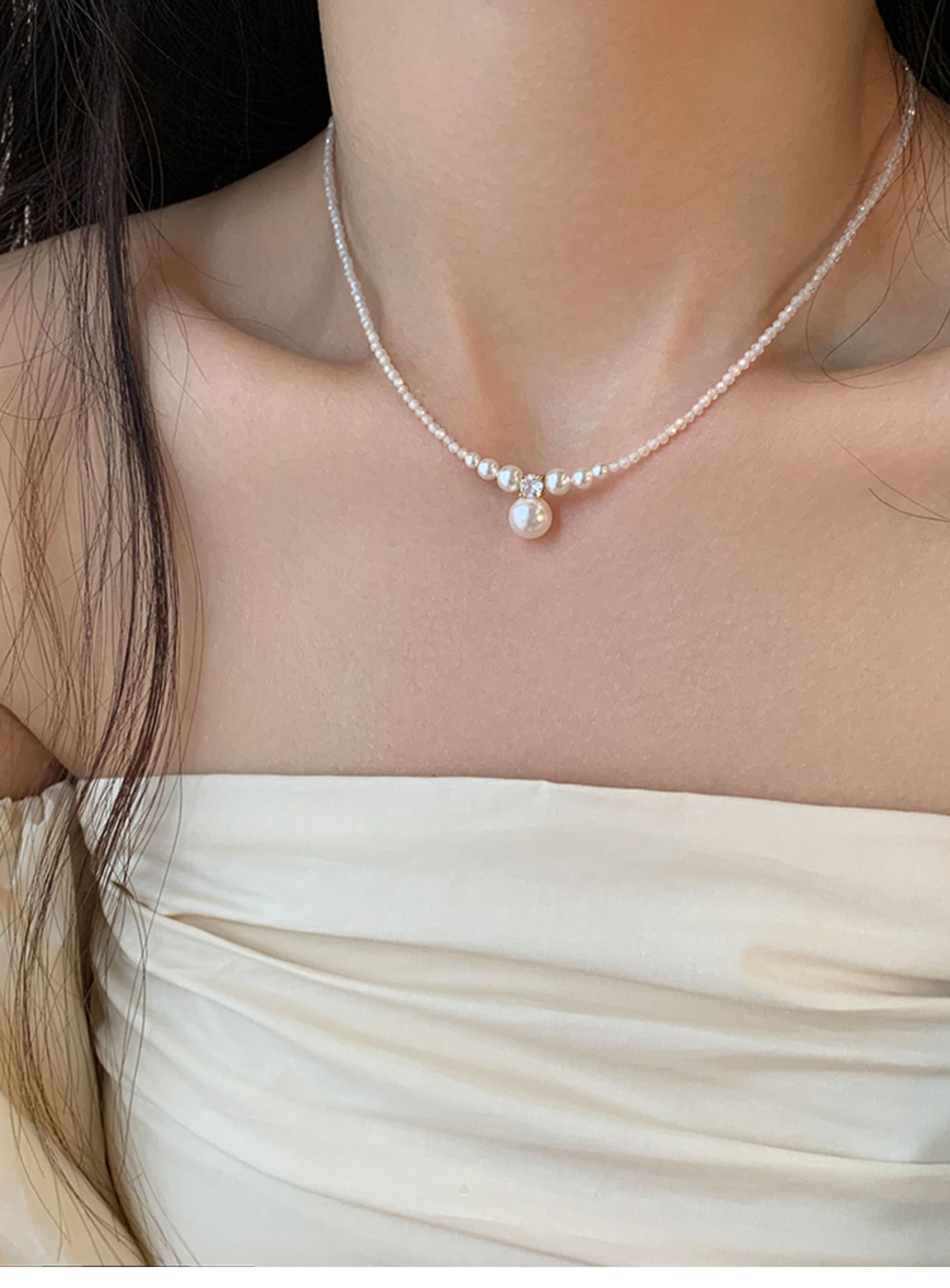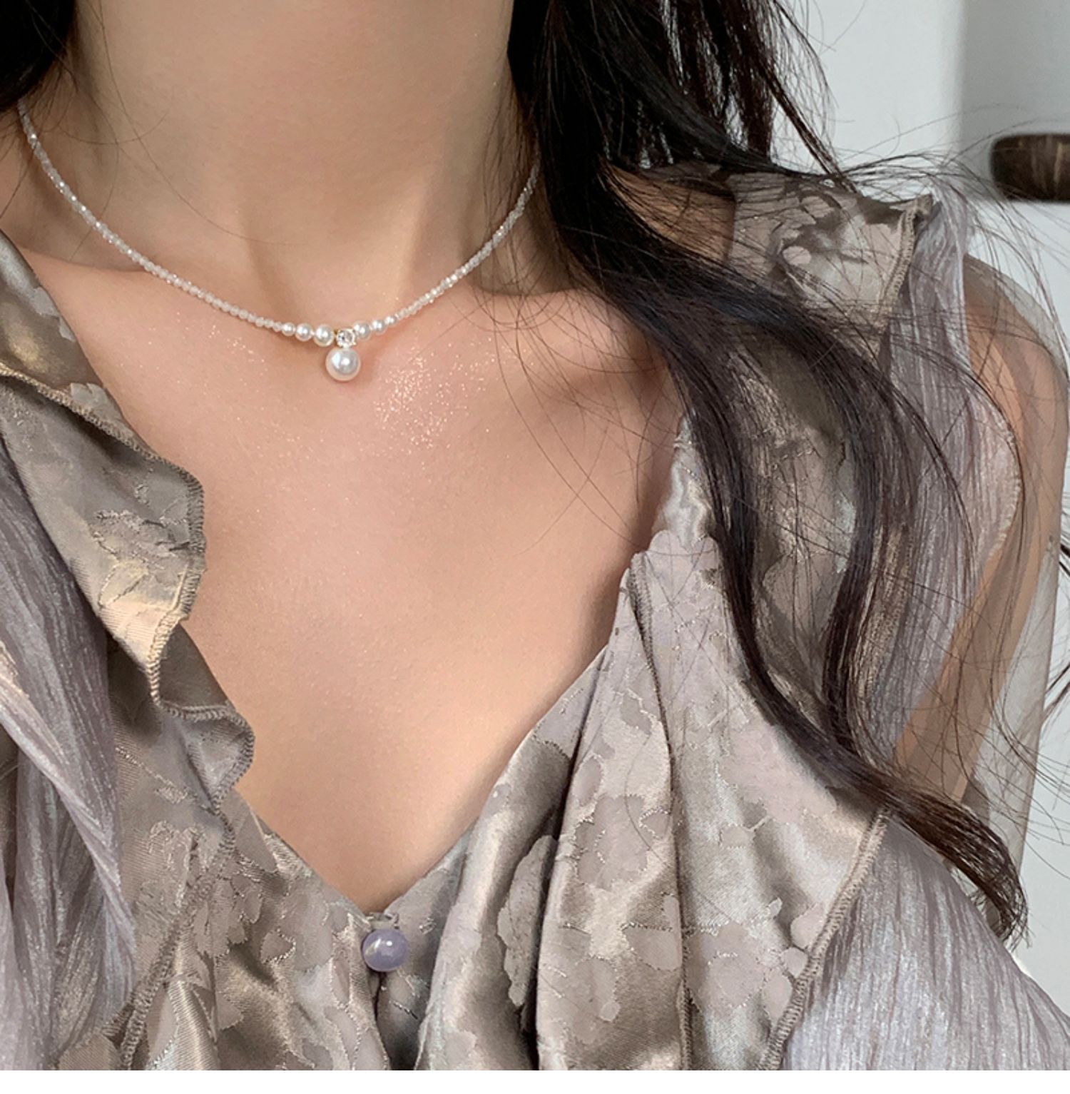 迷度通體925純銀正圓施家人造珍珠鎖骨鏈 超閃碎銀子項鏈溫柔輕奢