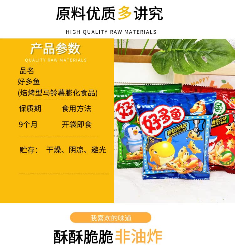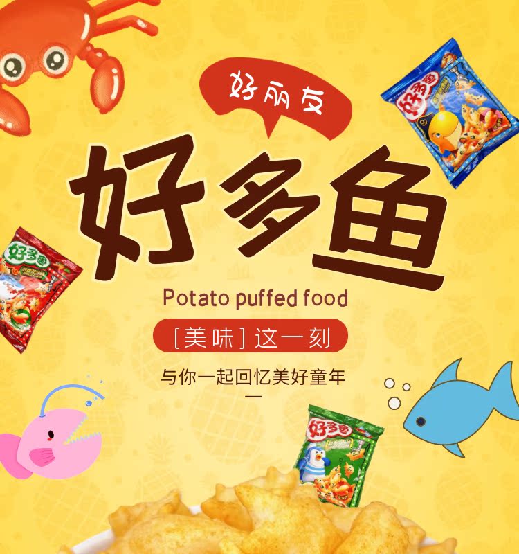 好麗友好多魚兒童小朋友餅干零食品薯片條膨化辦公室解饞休閑小吃