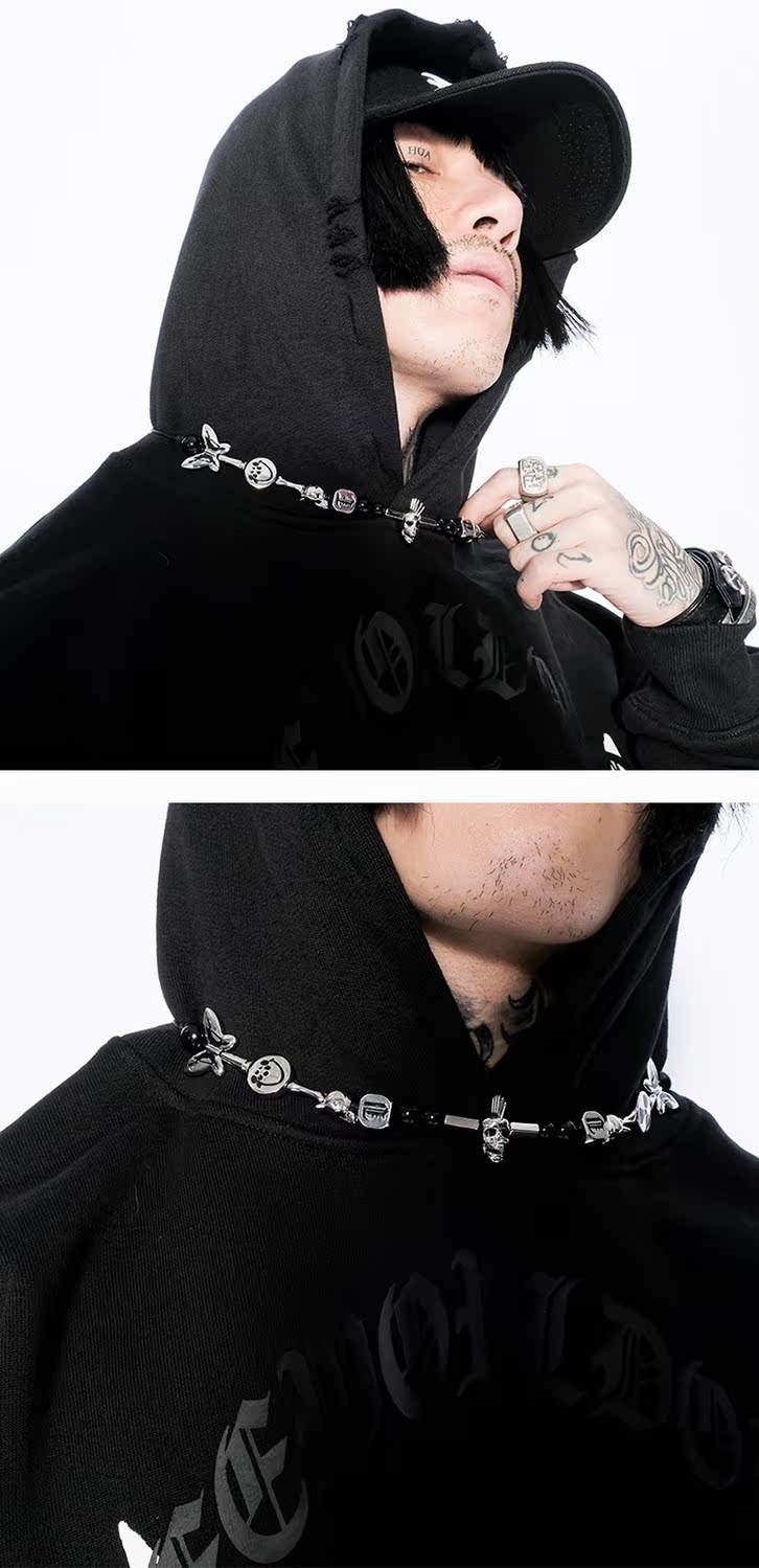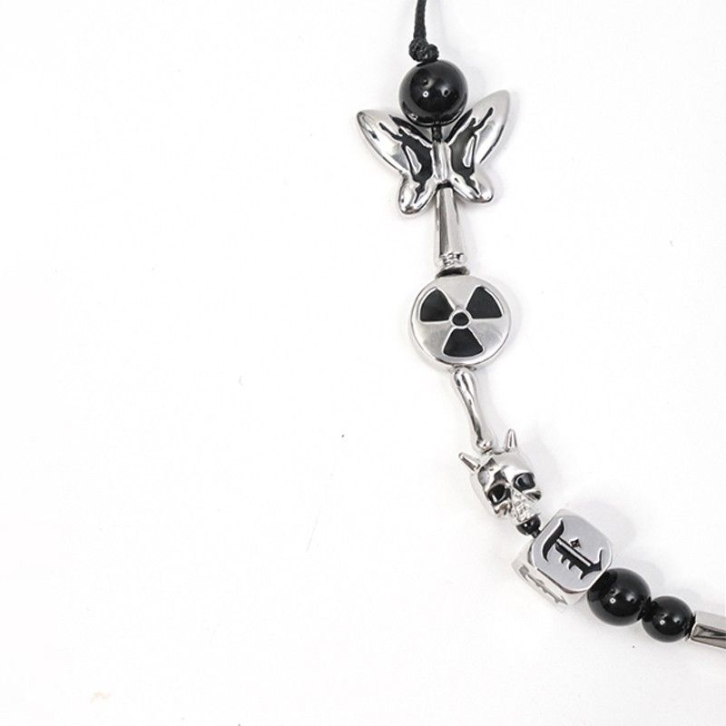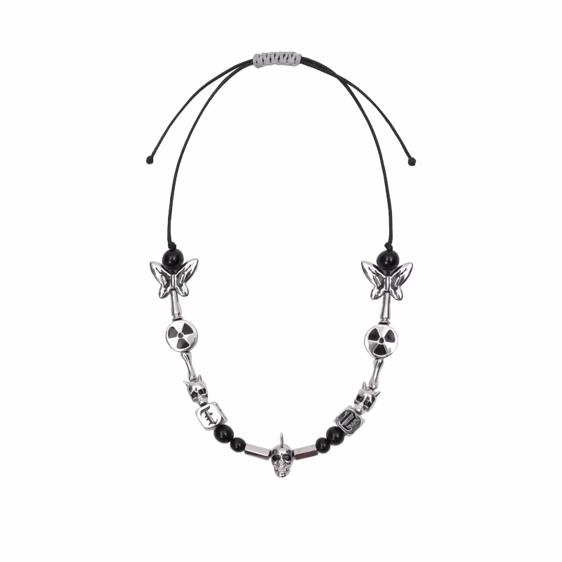 玩物制造 小眾設計聯名系朋克骷髏蝴蝶珍珠項鏈男女嘻哈潮牌配飾