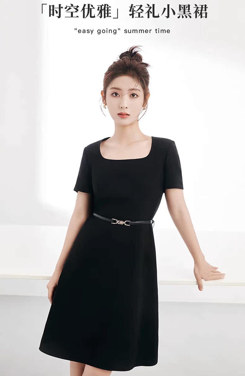 朗姿黑白色顯瘦輕禮服襯衫連衣裙女夏季新款復古小黑裙高級感裙子