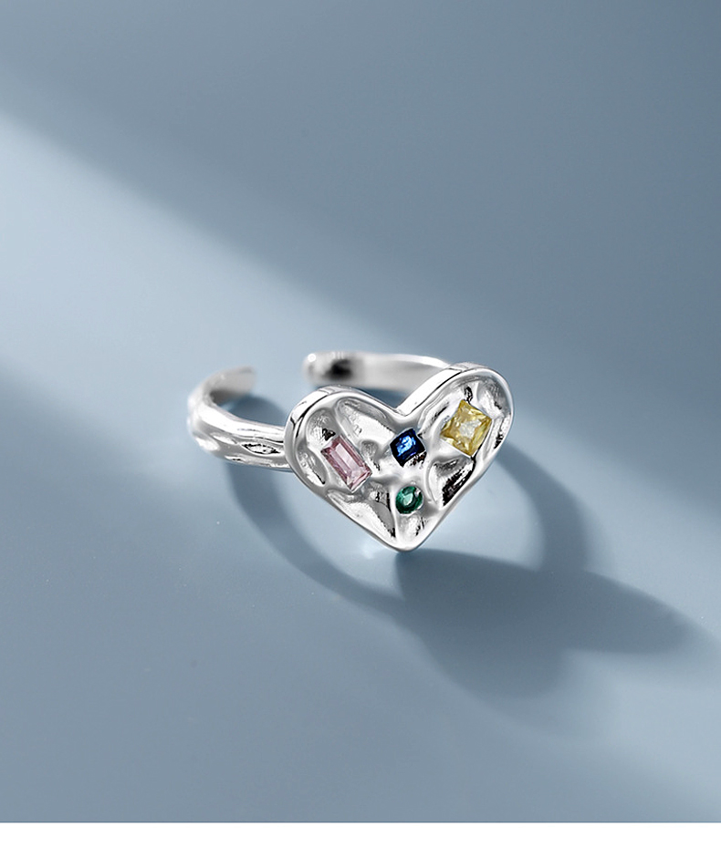 925純銀簡約小眾鏤空愛心開口食指戒女時尚百搭ins輕奢冷淡風戒指