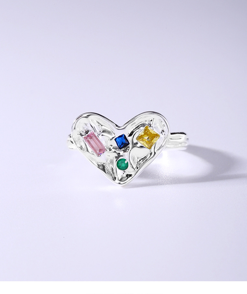 s925純銀不規則愛心錫紙紋理戒指女輕奢小眾ins簡約高級感食指戒
