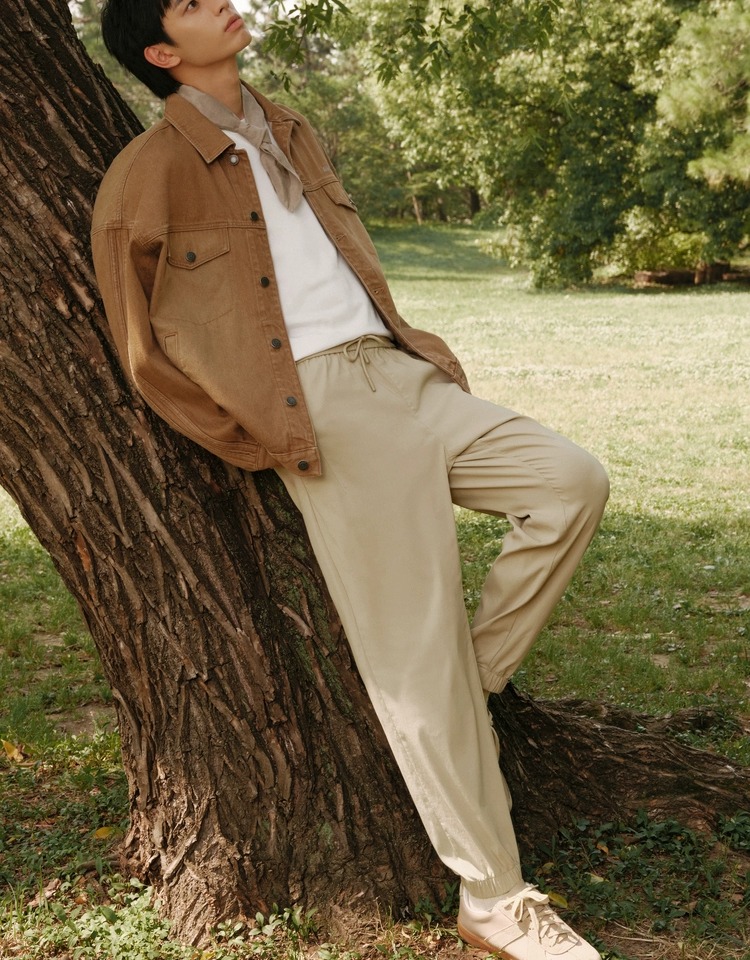 [商場同款]森馬休閑褲男2023秋季新款純色簡約風寬松束腳慢跑長褲