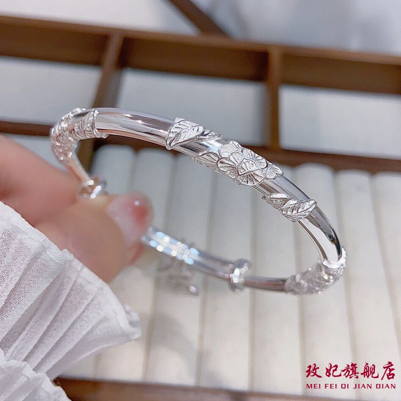 玫妃足銀9999實心開口光面貴妃心經純銀手鐲送媽媽老人長輩生日