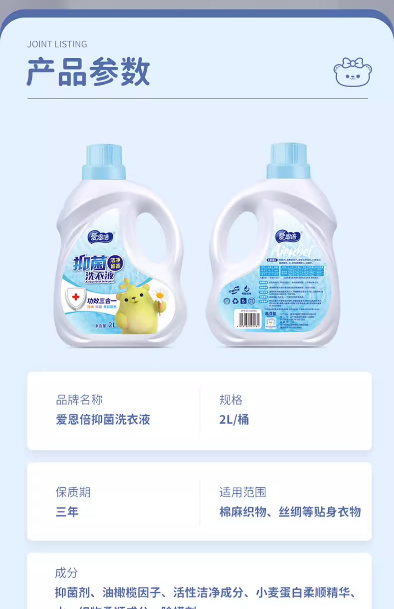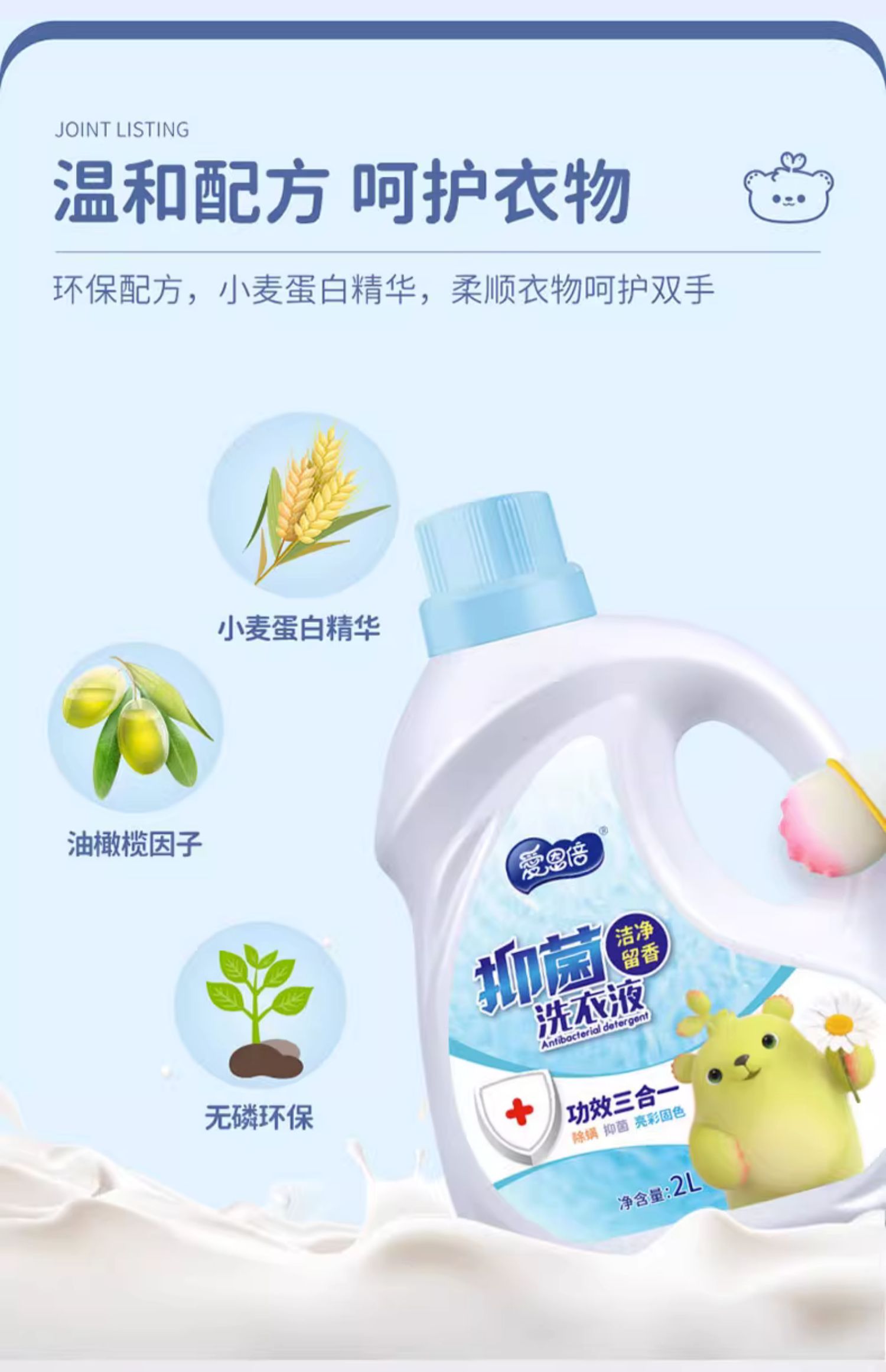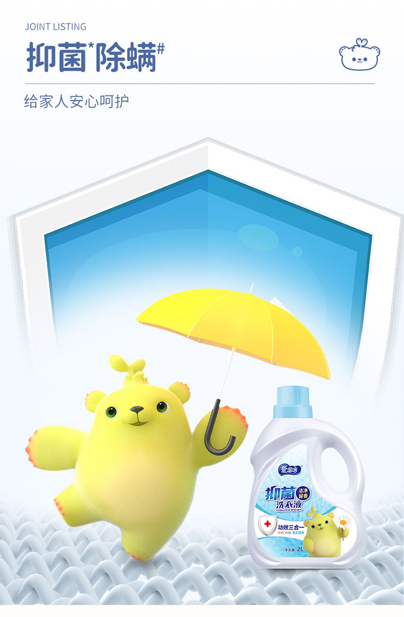 愛恩倍除螨抑菌洗衣液持久留香柔順三效合一深層潔凈祛除異味