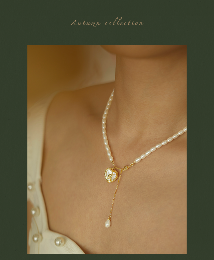 法式輕奢兔子人造珍珠項鏈女2023新款貝母愛心吊墜小眾頸鏈鎖骨鏈