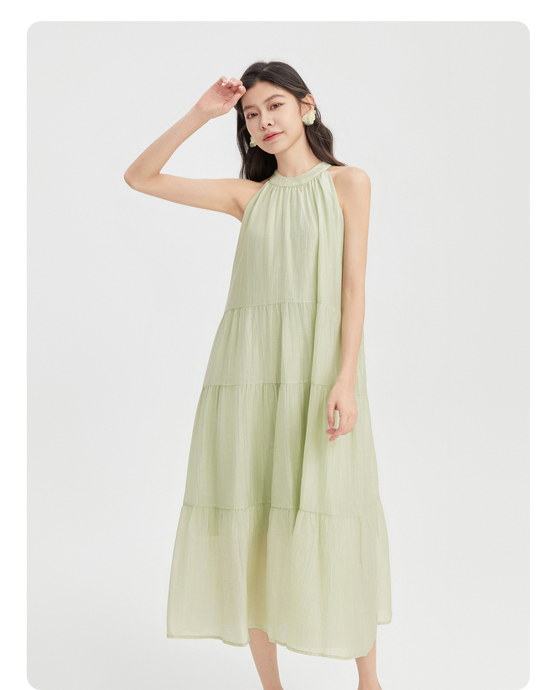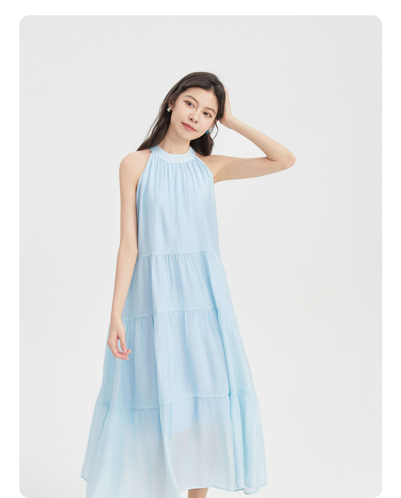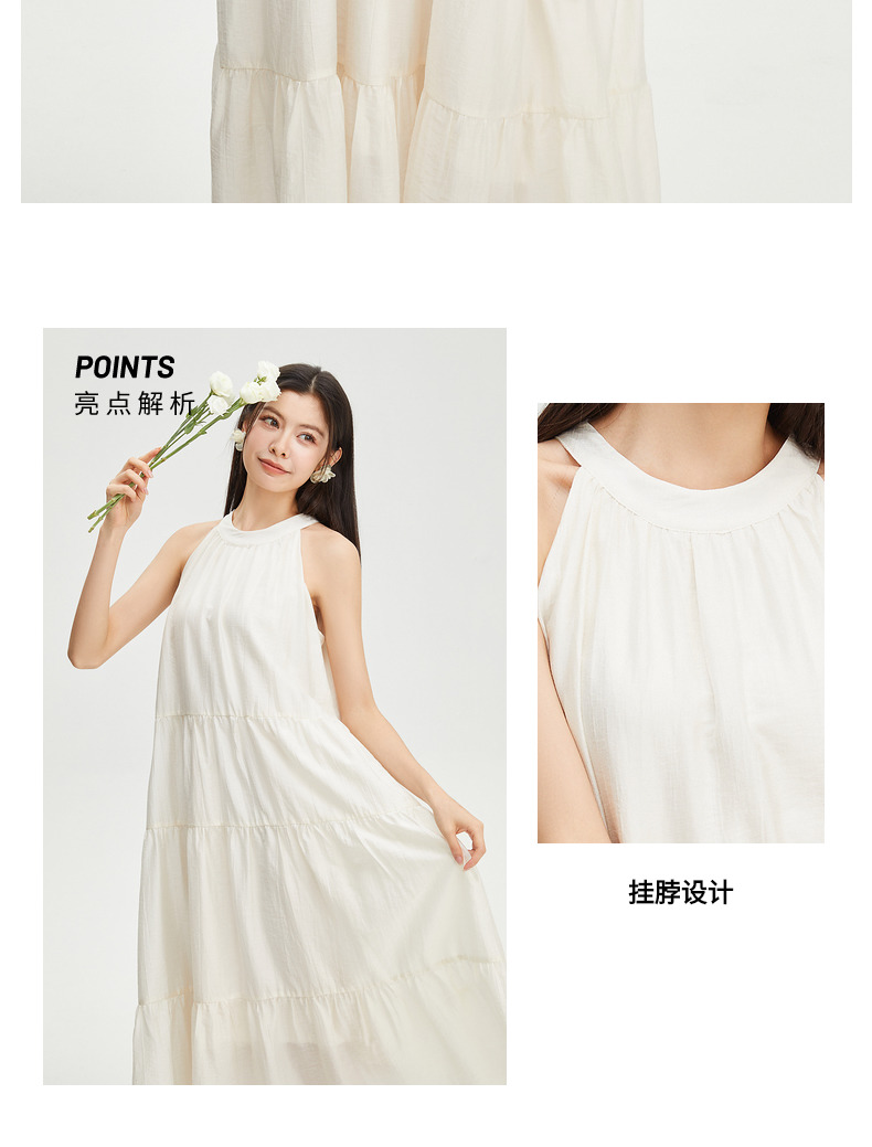 三福連衣裙子女裝夏季新款2023輕薄氣質洋氣掛脖女神范長裙472700