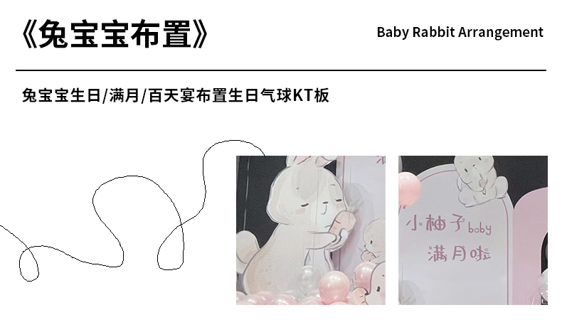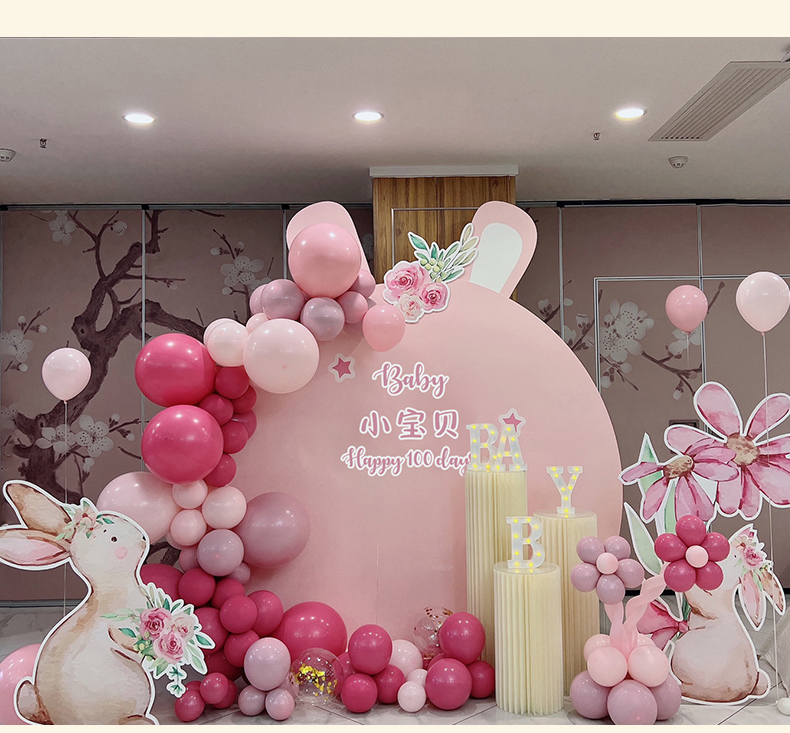 兔寶寶滿月酒百天宴布置男女孩儀式感氣球酒店場景裝飾背景墻kt板