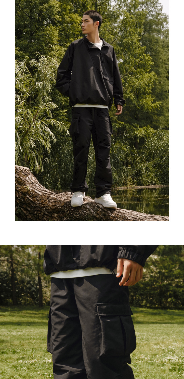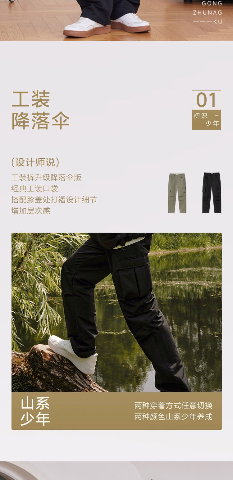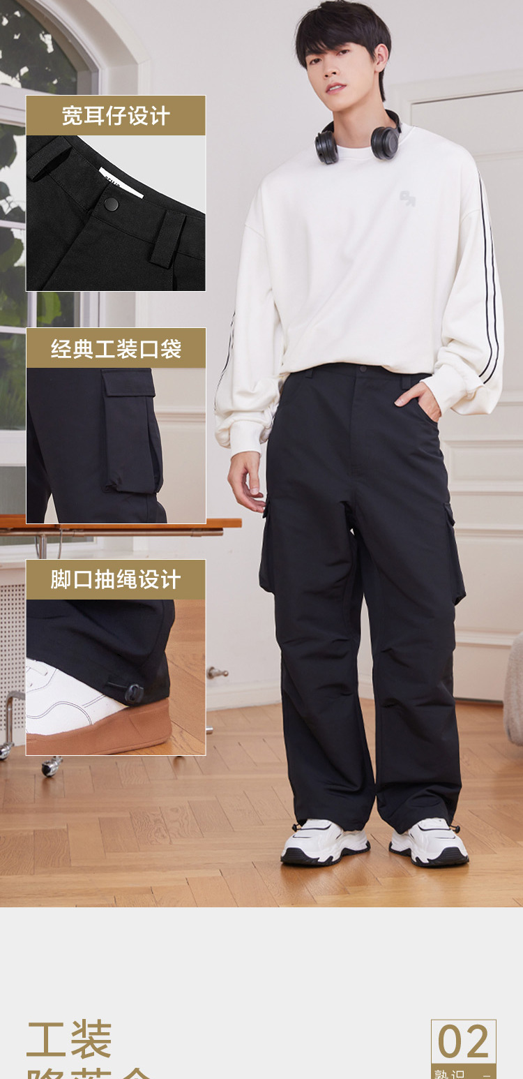 森馬工裝褲男2023秋季新款簡約時尚工裝風長褲子寬松降落傘兵褲男